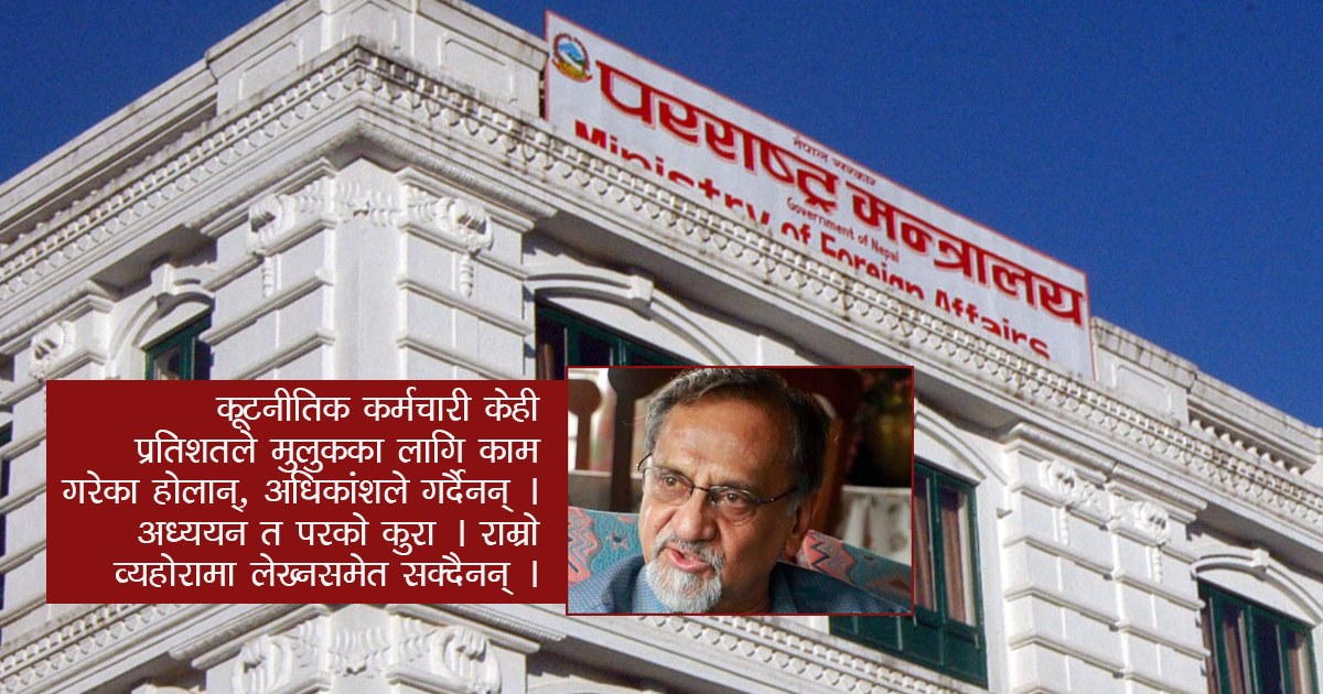 गत वर्ष प्रेस विज्ञप्ति लेखाइमा भएको त्रुटि र राजदूत प्याकुरेलले ‘राम्रो व्यहोरामा लेख्नसमेत सक्दैनन्’ भनेर लगाएको आरोपले परराष्ट्र सेवाको अवस्थालाई दर्शाउँछ । राजदूत प्याकुरेलको आरोप यत्तिमै सीमित रहेन । उनले अगाडि भनेका छन्, ‘कूटनीतिक सेवामा आएका कर्मचारीलाई यसरी नै छोड्ने हो भने उनीहरूले मुलुकलाई भड्खारोमा पार्छन् । उनीहरू कुनै पनि विषयमा कत्ति पनि गम्भीर छैनन् ।’