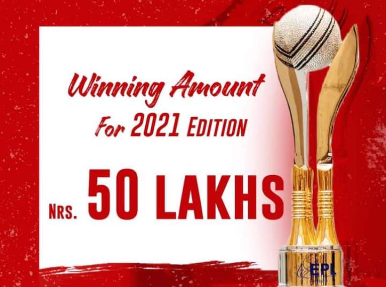 काठमाण्डु- चौथो संस्करणको एभरेष्ट प्रिमियर लिग (इपिएल) टी–ट्वान्टी क्रिकेट प्रतियोगिताको विजेता टोलीले ५० लाख प्राप्त गर्ने भएको छ । आगामी असोज ९ देखि २३ गतेसम्म चल्ने उक्त प्रतियोगिताको विजेताले ५० लाख तथा उपविजेताले १५ लाख प्रदान गर्ने आयोजक इपिएल प्रालिले जनाएको छ । खेल किर्तिपुरस्थित त्रिवि क्रिकेट मैदानमा हुनेछ ।