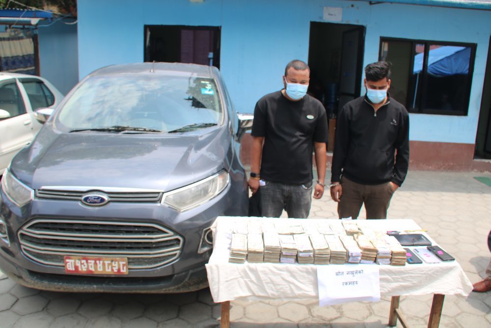 प्रहरी वृत्त गौशलाबाट खटिएको प्रहरीले प्रदेश.३–०१०२२ च १९७२ नम्बरको कारमा सवार उनीहरूलाई उक्त नगदसहित पक्राउ गरेको हो ।