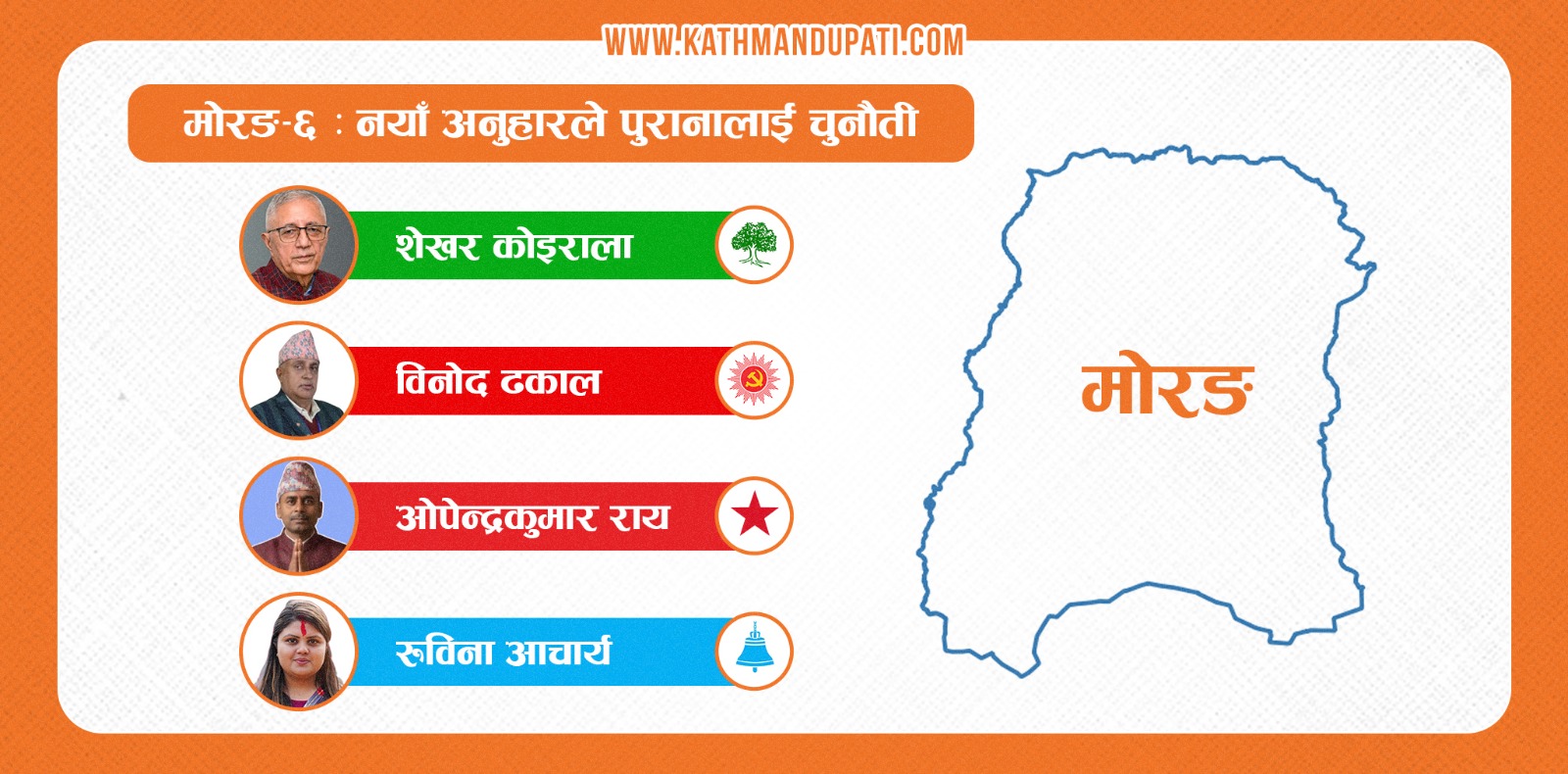 कोइराला ७९ सालको निर्वाचनमा विजयी भएका थिए भने ढकाल ७९ सालमा मोरङ–४बाट उम्मेदवार बनेका थिए । यसपटक केही नयाँ अनुहारले पुरानालाई चुनौती दिएका छन् ।