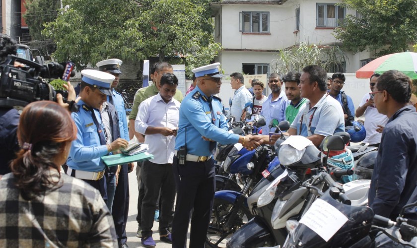 महानगरीय ट्राफिक प्रहरी महाशाखाले उपत्यकामा विभिन्न समयमा न्युरोड, क्षेत्रपाटी, कोटेश्वर, ठमेल, पाटन, पुतलीसडक, थानकोट, नयाँबसपार्क, महाराजगञ्ज, कालीमाटीलगायत स्थानबाट हराएका मोटरसाइकल फेला पारेर आज सम्बन्धित धनीलाई जिम्मा लगाएको हो ।