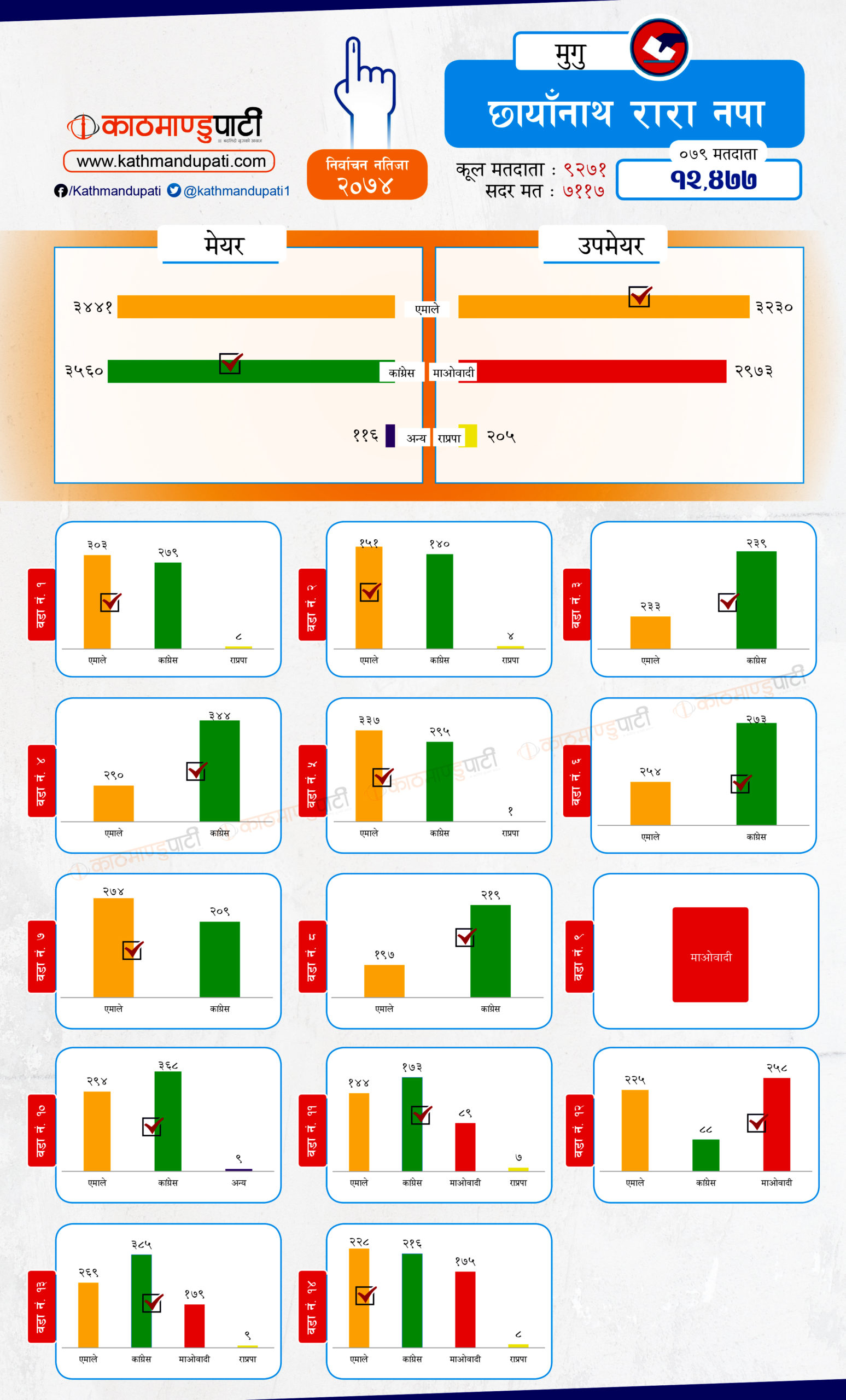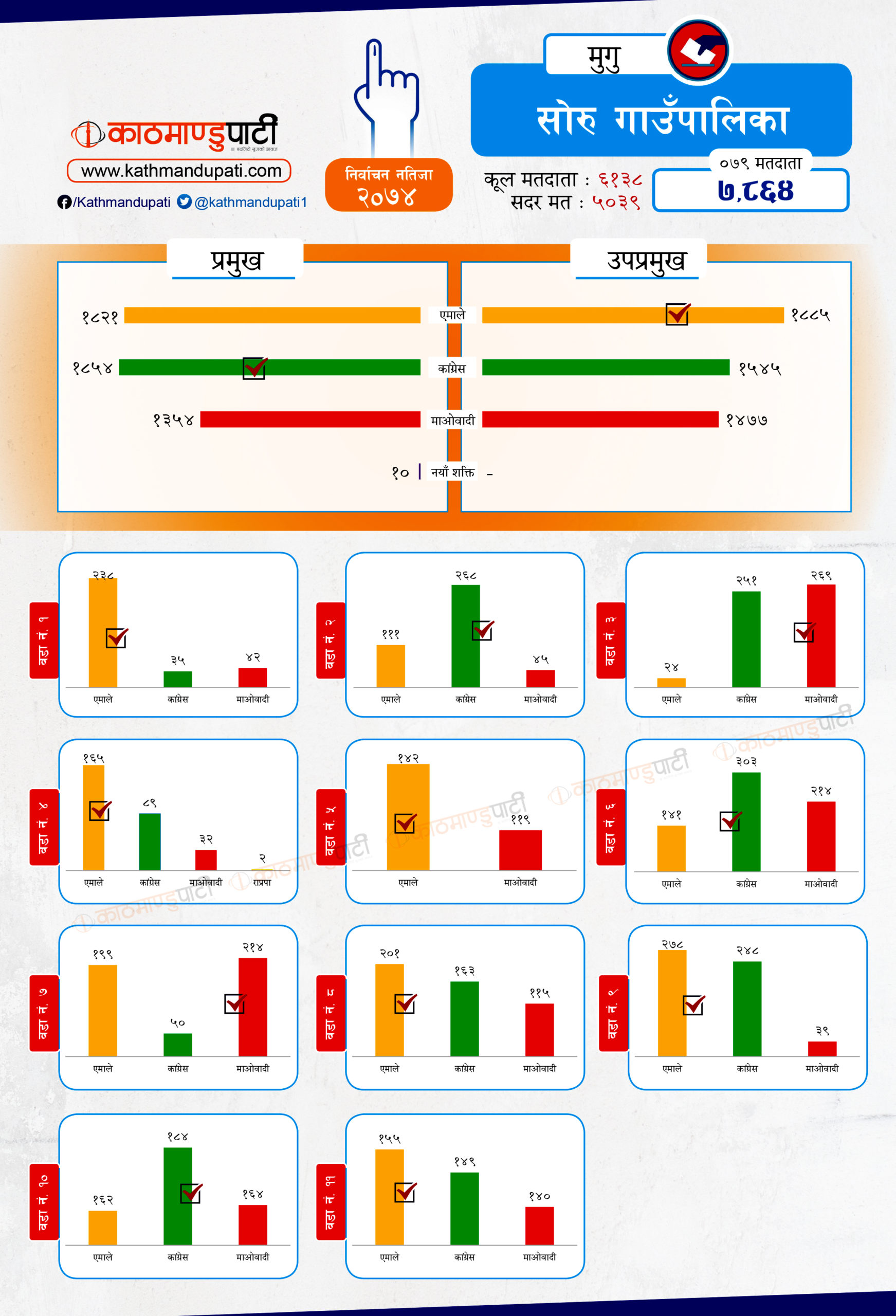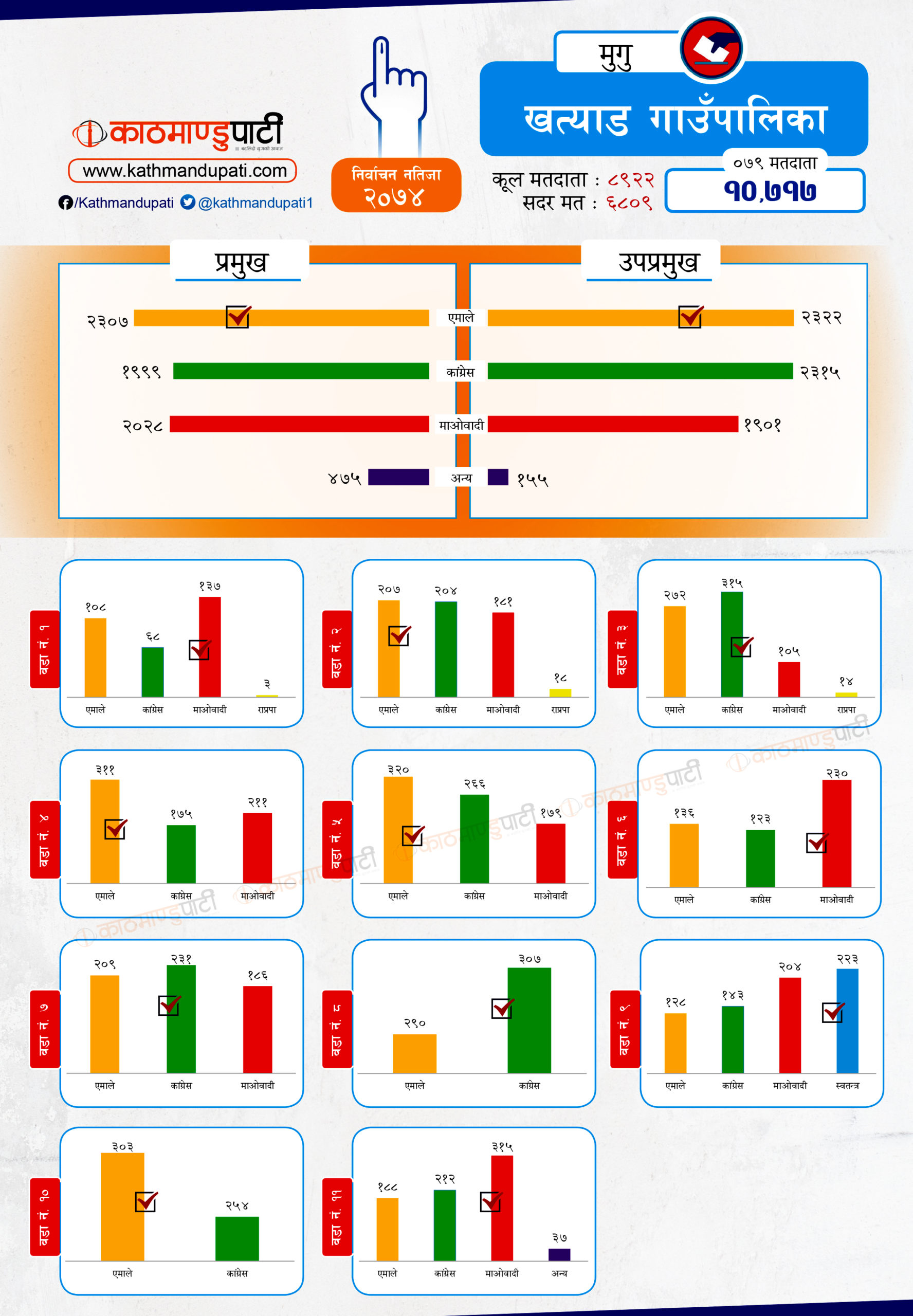 हेर्नुस, मुगुकाे चारवटै स्थानीय तहमा ०७४ सालको निर्वाचन परिणाम इन्फोग्राफमा ।