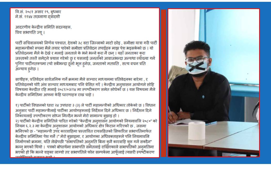 जारी बैठकमा महामन्त्री ढकालले आफ्नो अभिव्यक्ति स्वतन्त्रता हनन् भएको भन्दै प्रतिवेदन प्रस्तुत मानेका थिएनन् । गर्न नमानेपछि सहमहामन्त्री कविन्द्र बुर्लाकोटीले प्रतिवेदन पढेर सुनाए ।
