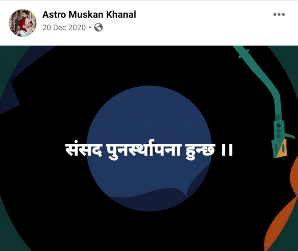 उक्तदिन नै चर्चित भविष्यवक्ता मुस्कान खनालले आफ्नो फेसबुक सट्याटस मार्फत संसद पुनर्स्थापना हुने भविष्यवाणी गरेका थिए । पुर्व सभामुख कृष्णबहादुर महराले सफाइ पाउने, कोरोना नियन्त्रण हुने समय, संसद पुनःस्थापना हुने भविष्यवाणी लगायत उनले हरेक पटक गर्ने भविष्यवाणी सत्य सावित हुँदै आएका छन् ।