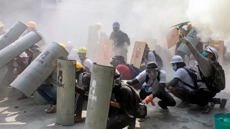 आइतबार म्यानमारका यंगुन, दवेई र मन्डाले शहरमा प्रदर्शन चर्किएको थियो। ती शहरमा धेरै प्रदर्शनकारीको ज्यान गएको बिबीसीले जनाएको छ। सुरक्षाकर्मीहरू प्रदर्शनविरुद्ध शनिवारदेखि कडा रूपमा प्रस्तुत हुन थालेका थिए।
