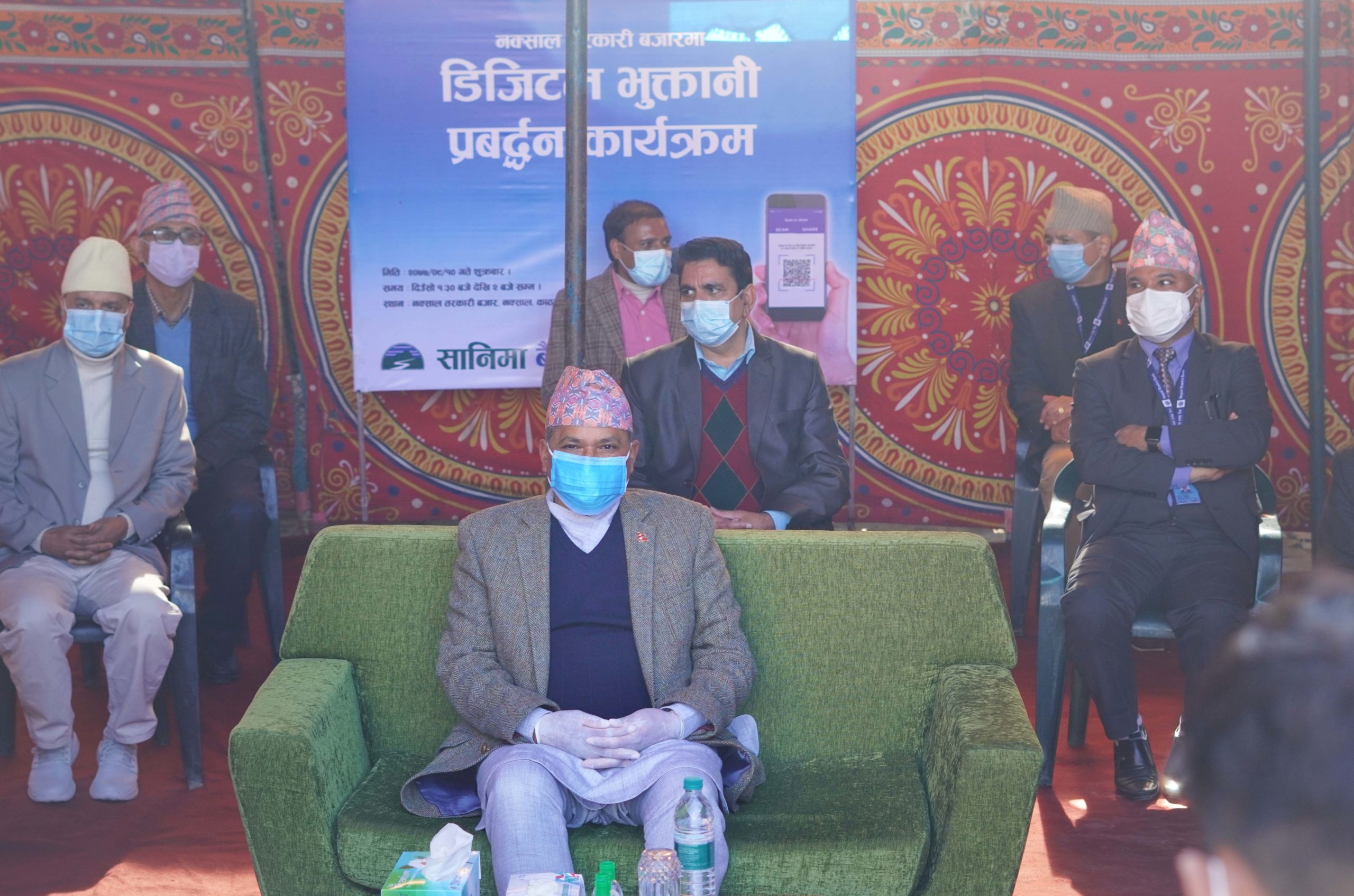 नेपाल राष्ट्र बैंक, सानिमा बैंक र नक्साल तरकारी बजारको समन्वयमा आयोजित कार्यक्रममा नेपाल राष्ट्र बैंकका गभर्नर महाप्रसाद अधिकारीले फलपूmल तथा तरकारी खरिद गर्दा क्यू आर कोडबाट बिल भुक्तानी गरी उक्त कार्यक्रमको थालनी गरेका हुन् । यस तरकारी बजारमा अपवादबाहेक सम्पूर्ण पसलहरुमा क्यू आर कोडबाट भुक्तानी गर्न सकिनेछ ।