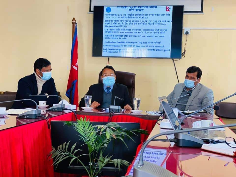 चार वर्षभन्दा लामो समयदेखि डिपीआरको काम जारी रहे पनि अझै सकिएको छैन । एमडब्लुएच कन्सलटेन्टले डिपीआर ३२ महिनाभित्र डिपीआर सक्ने गरी कम्पनीसँग सम्झौता गरेको थियो । त्यसयता पटकपटक म्याद थप हुँदै आएको छ । मन्त्री पुनले कर्णाली प्रदेशको मुहार फेर्ने आयोजना भएकाले डिपीआरको काम तत्काल सकेर आयोजना निर्माण थाल्नुपर्नेमा जोड दिए ।