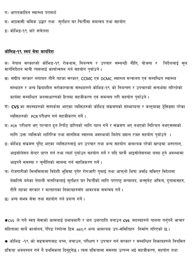 ‘कोरोना पुष्टि भएका मानिसहरुलाई थप उपचार तथा अन्य सहयोग आवश्यक परेको खण्डमा अस्पताल, आइसोलेसन सेन्टर प्राप्त गर्न तथा त्यहाँ पुर्याउन सहयोग गर्ने र यदि घरमै आइसोलेसनमा बस्दा हुने अवस्थामा आइपर्ने समस्या र चुनौतीको सामना गर्न सहजिकररण गर्ने’, विज्ञप्तिमा भनिएको छ ।