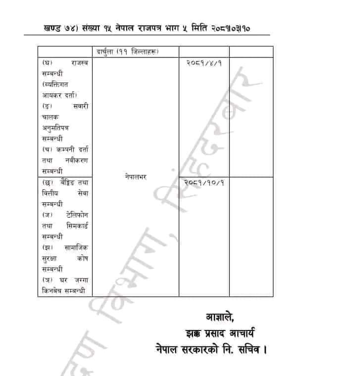 यस्तो छ राजपत्रमा प्रकाशित सूचना