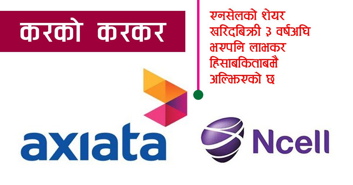 काठमाडौं । निजी क्षेत्रको दूरसञ्चार सेवा प्रदायक कम्पनी एनसेलको शेयर खरिदबिक्री हुँदा २०७२ चैत २९ गते नै पूँजीगत लाभकर तिर्ने प्रक्रिया अगाडि बढ्नुपर्ने थियो । तर शेयर कारोबार भएको तीन वर्षभन्दा बढी भइसक्दा समेत कर तिर्ने विषय हिसाबकिताबमै अल्झिएको छ ।