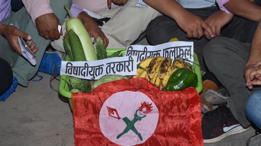 भारतबाट नेपालमा आयात हुने तरकारी र फलफूलको विषादी परीक्षण गर्ने निर्णयबाट सरकार पछि हटेर जनतालाई ‘विष’ खुवाउन खोजेको भन्दै मन्त्री कुन्दन काफ्ले, नेविसंघका निवर्तमान केन्द्रिय सदस्य सुशिल भट्टलगाएत नेविसंघका नेता, कार्यकर्ताले मंगलबार जिल्ला प्रशासन कार्यालय काठमाडौंमार्फत प्रधानमन्त्रीलाई तरकारी उपहार पठाएको नेविसंघले जनाएको छ ।