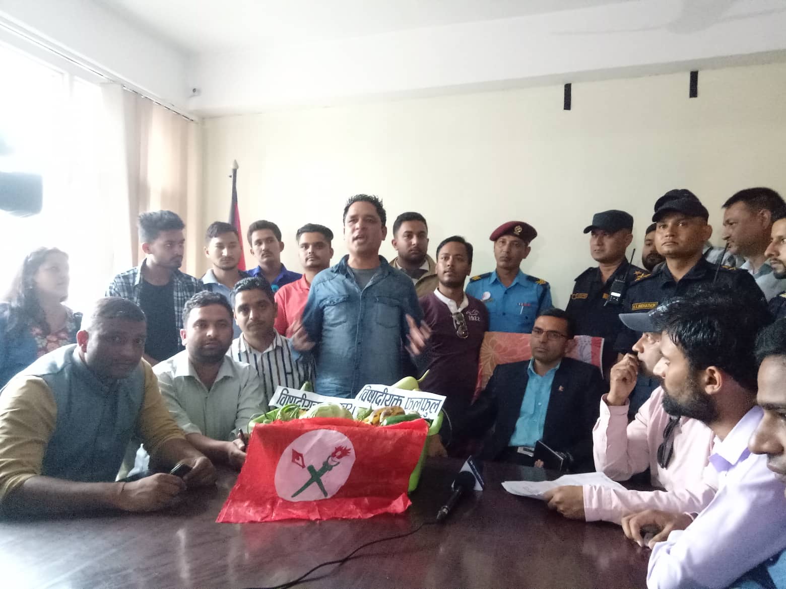 आइतबार एक विज्ञप्ति जारी गर्दै नेविसंघ पूर्वमहामन्त्री काफ्लेले भारतीय तरकारी बिना जाँच आयात गर्ने सरकारी निर्णय विरुद्ध चरणवद्ध आन्दोलनको घोषणा गरेका थिए ।