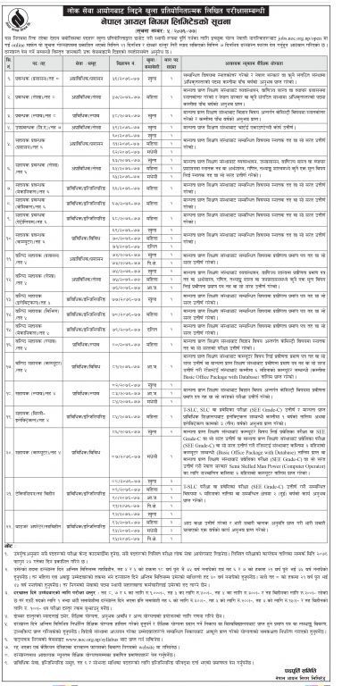 निगमले प्रवन्धकका लागि खुला पुर्ति गर्नका लागि १ जनाको माग गरेको छ । त्यस्तै सहायक प्रबन्धक कम्प्यूटर, सहायक (मिस्त्री) लगायतका लागि ४१ पदका लागि मागेको हो ।
