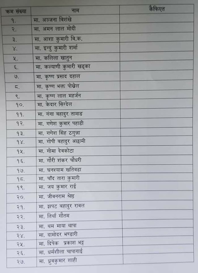 नेकपाका सांसदहरु कृष्ण दाहाल, विशाल भट्टराई, यज्ञराज सुनुवार, सुरेश राई, लगायतको अगुवाइमा ७० जना जति सांसदको हस्ताक्षर संकलन गरिएको छ ।