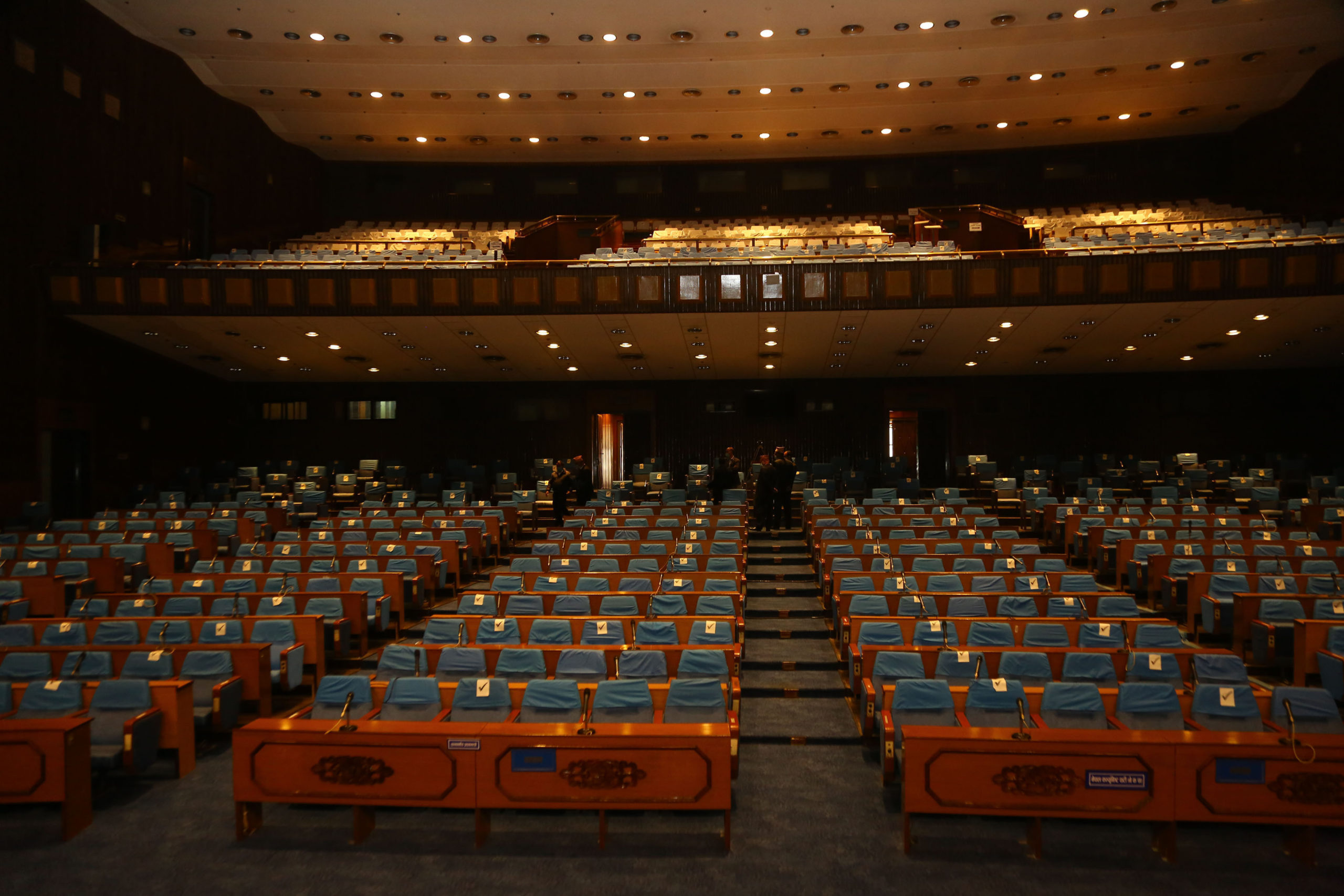 काठमाण्डु – नयाँ बानेश्वरस्थित संघीय संसद् भवनको प्रतिनिधिसभाको बैठक कक्ष । चिकित्सकसहित टोली र संसद सचिवालयका कर्मचारीले आइतबार भवनको निरीक्षण गरी आगामी प्रतिनिधिसभाको बैठकका लागि भौतिक दूरी र स्वास्थ्यका सम्पूर्ण मापदण्ड पूरा गरी बैठक बस्ने तयारी गरिएको छ ।