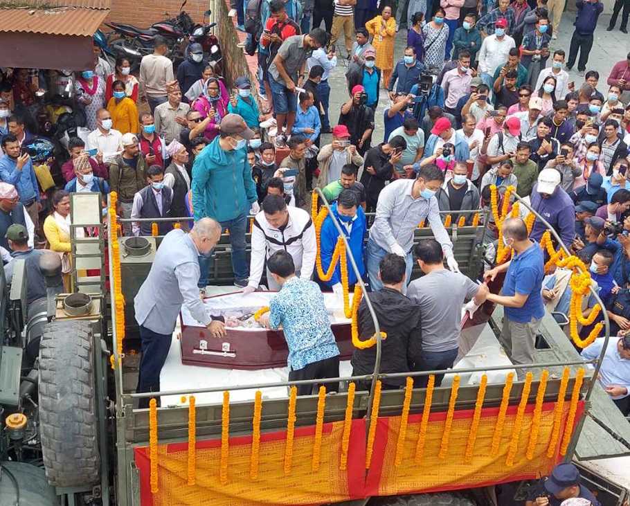 शवयात्रा शिक्षण अस्पताल, महाराजगञ्ज, धुम्बाराही, चाबहिल हुँदै पशुपति आर्यघाट पुग्ने छ । नेम्वाङको पशुपति आर्यघाटमा राजकीय सम्मानका साथ अन्त्येष्टि हुनेछ ।