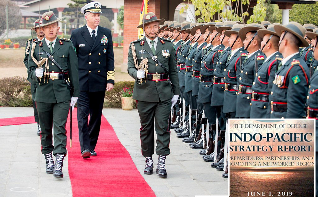 अमेरिकी रक्षा मन्त्रालयले शनिबार सार्वजनिक गरेको ‘इन्डो-प्यासिफिक रणनीति प्रतिवेदन-२०१९’ मा अमेरिकाले नेपालसहित दक्षिण एशियाका पाँच मुलुकसँग हिन्द प्रसान्त (इन्डो प्यासिफिक) रणनीति अन्तर्गत नेपालसँग ५ क्षेत्रमा सैन्य विस्तार गर्न चाहेको उल्लेख गरेको छ ।