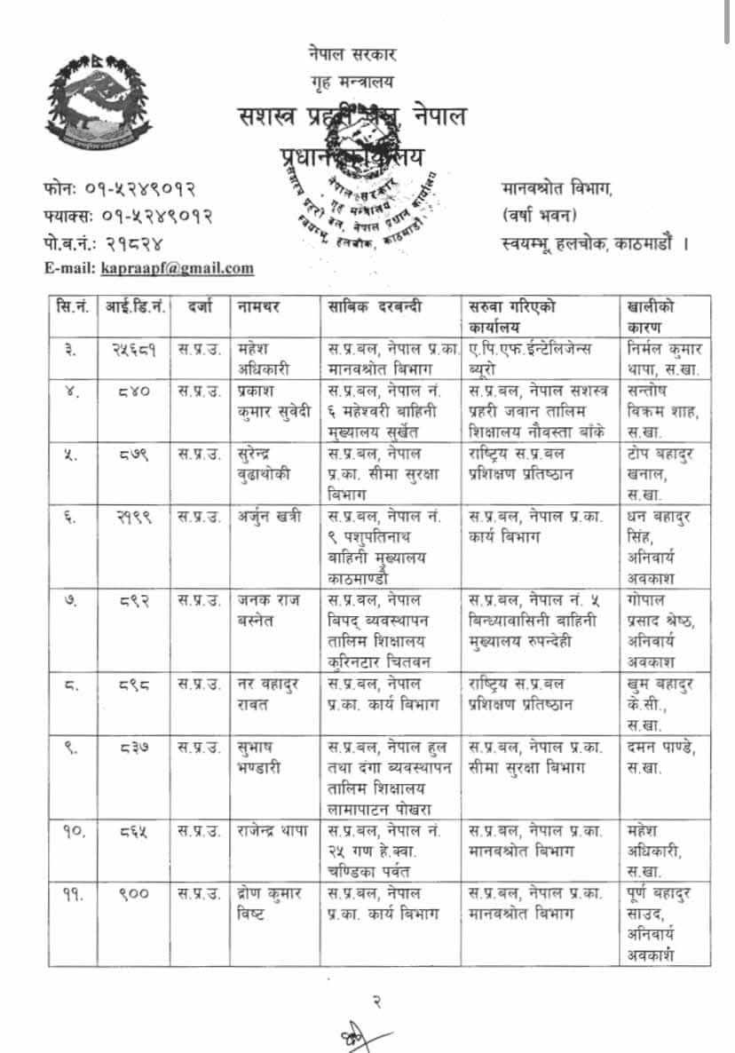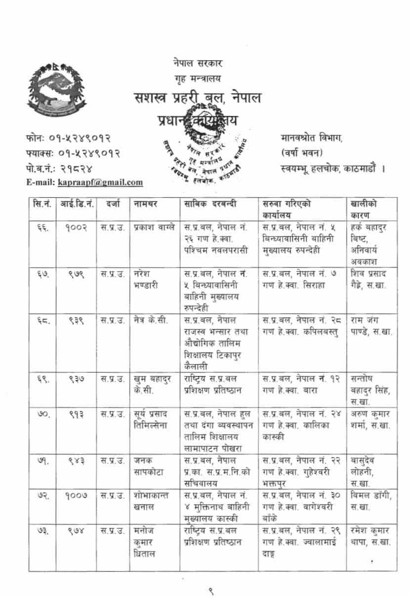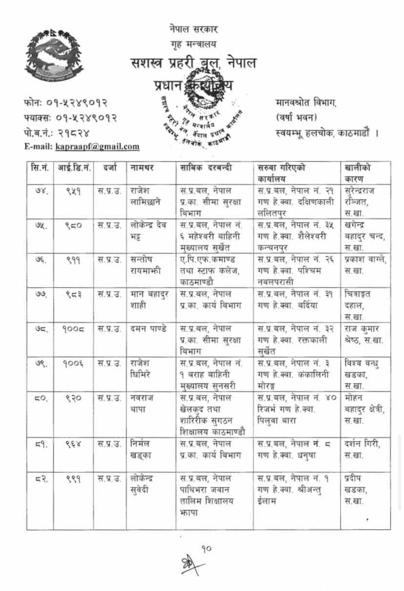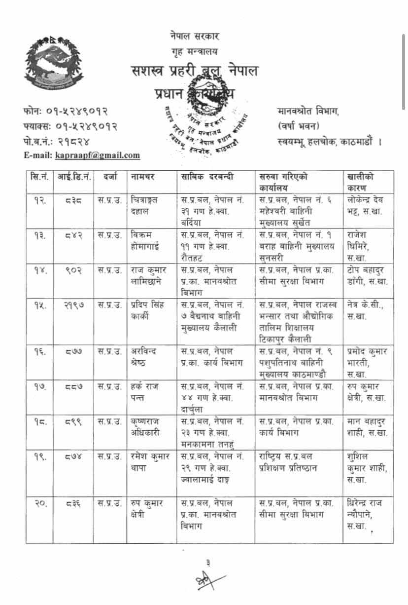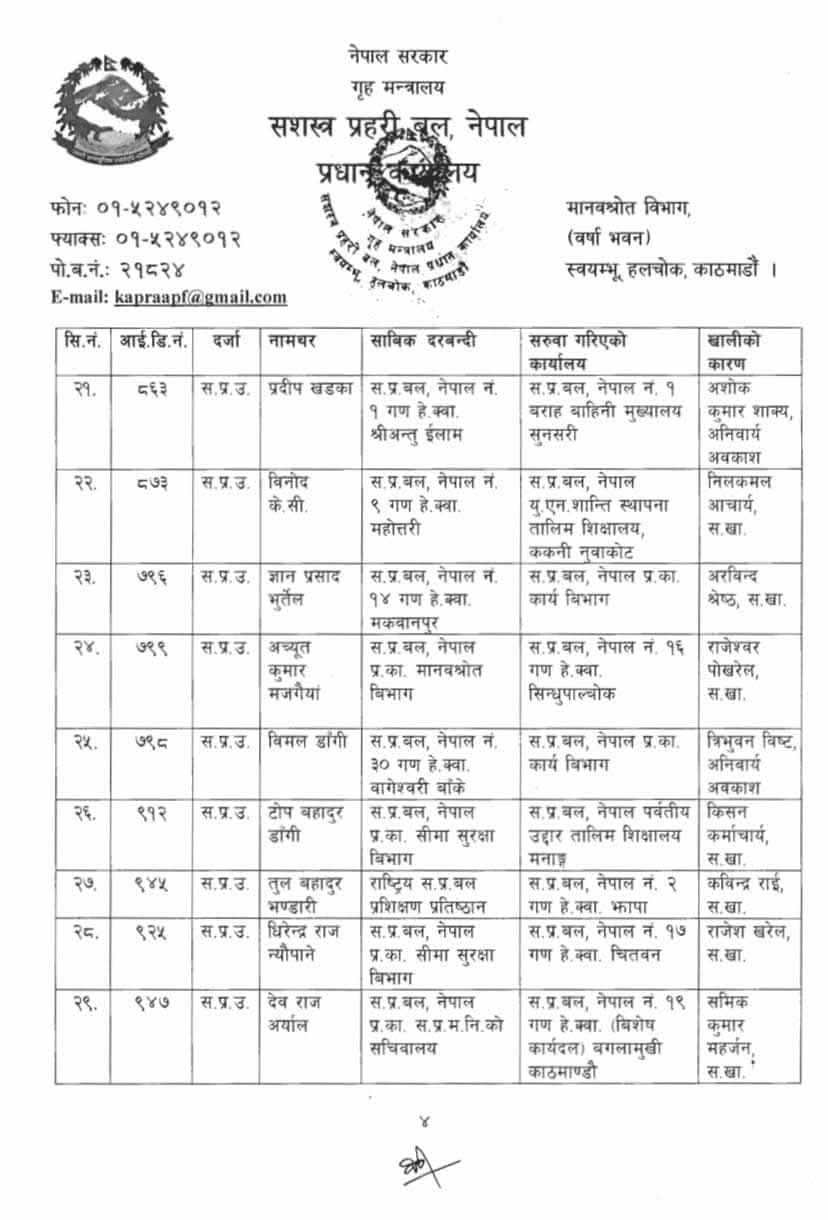 सरुवा भएकाहरू सशस्त्र प्रहरी सेवा, साधारण समूह, साधारण उपसमूहतर्फका छन् ।