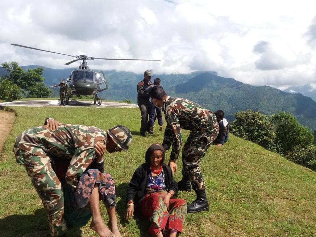 नेपाली सेनाको गोरखबक्स गणबाट सह सेनानीको कमाण्डमा खट्टिएका २५ जनाको खोज तथा उद्धार टोलिले बाकिं हराईरहेका २७ जनाको खोजी कार्य जारी राखेको छ । आज विहान गएको सुख्खा पहिरोमा परि ३७ वटा घर पुरिएको थियो । उक्त स्थानमा नेपाली सेनाको हेलिकप्टरद्वारा राहत सामग्री पुर्याएको छ ।