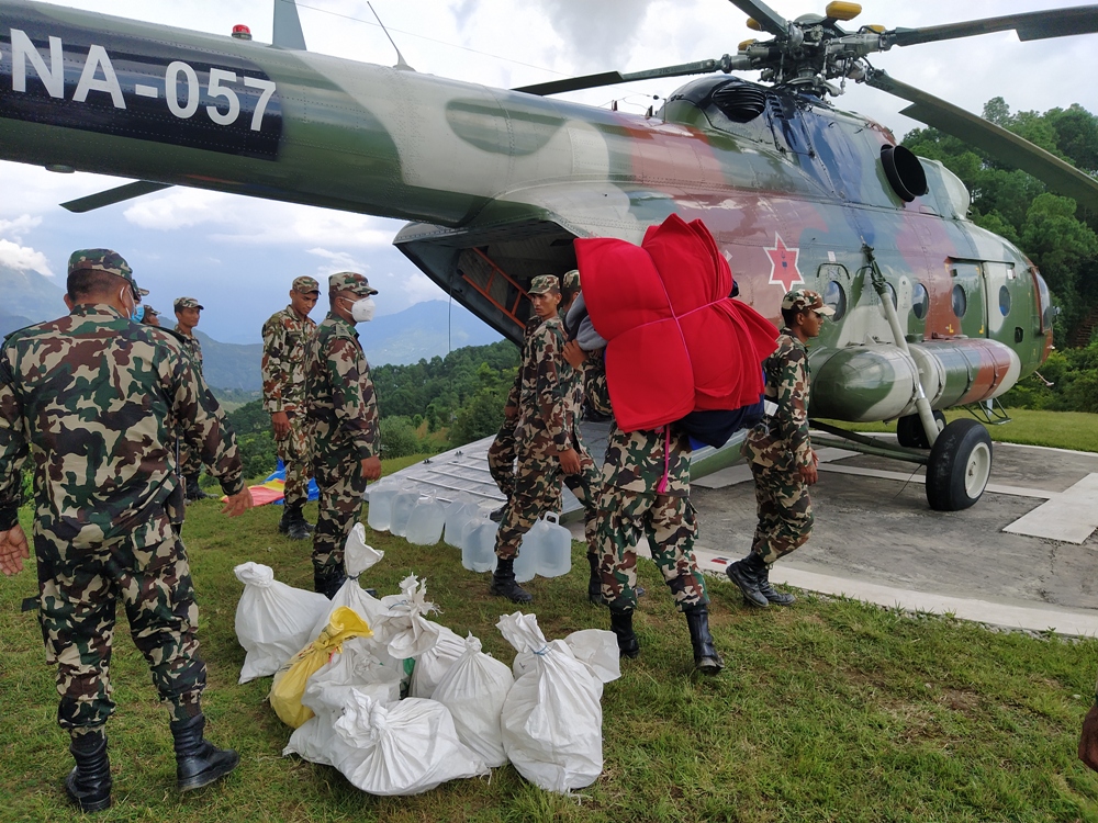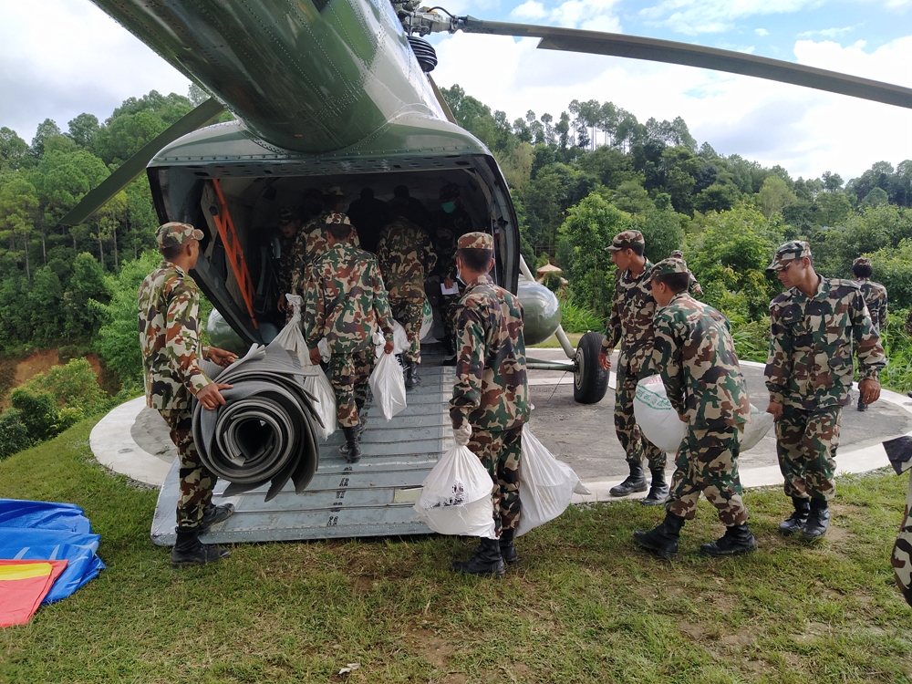 सेनाले उक्त पहिरोमा परि हराइरहेका २० जनाको खोजी कार्य जारी राखेको छ । ३० र ३१ गते नेपाली सेनाको एमआई–१७ हेलिकप्टरद्वारा खाद्यान्न, लत्ता कपडा, पाल लगायत अत्यावश्यक राहत सामग्री ढुवानी गरी उक्त स्थानमा पुर्याएको छ ।