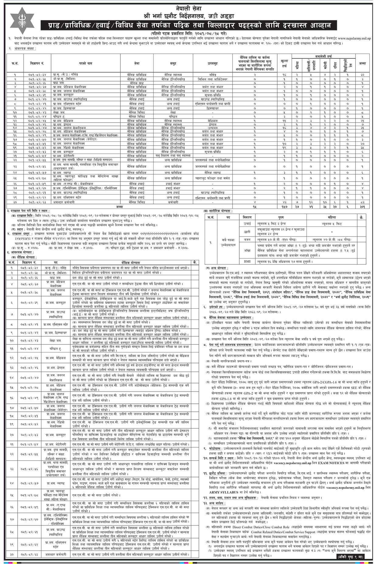 मंसिर २८ गतेदेखि पुस २७ गतेसम्म केन्द्रीय भर्ना छनोट निर्देशनालय स्वयम्भूमा दरखास्त बुझाउन सकिने सूचनामा उल्लेख छ ।