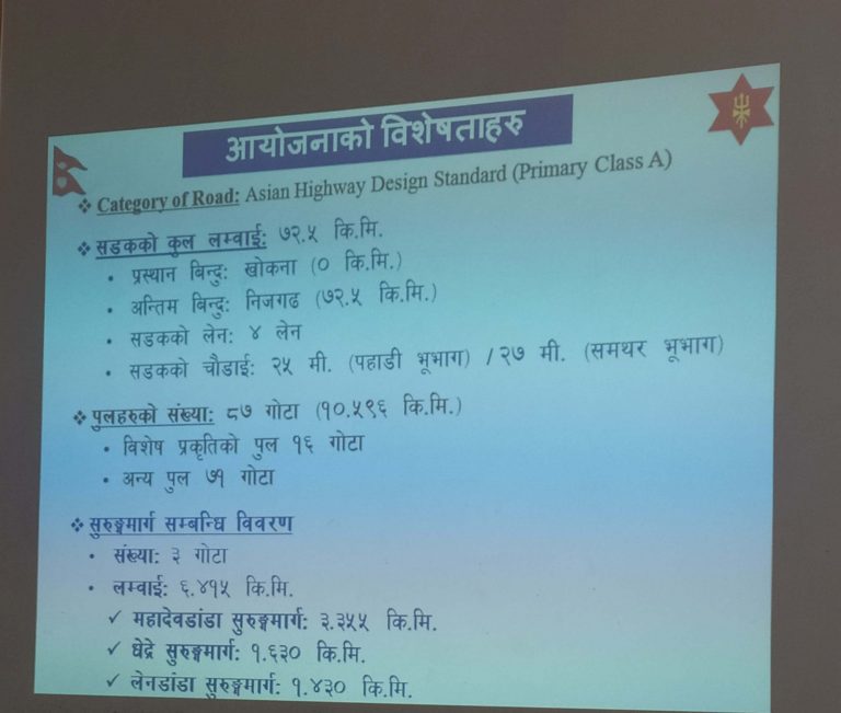 ललितपुरको खोकना प्रवेशविन्दु रहेको फास्ट ट्र्याक पहाडी क्षेत्रमा २५ मिटर र समथर भूभागमा २७ मिटर फराकिलो हुनेछ ।