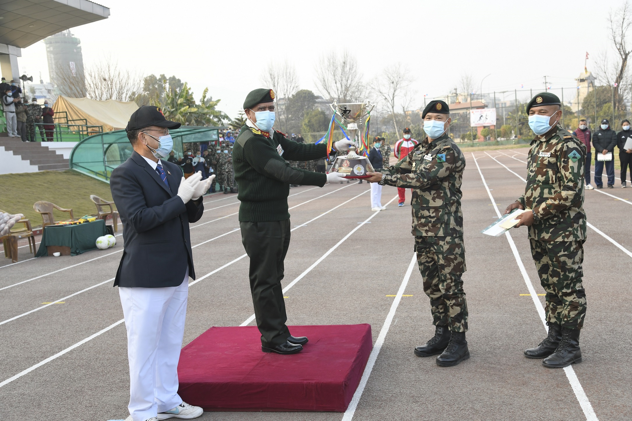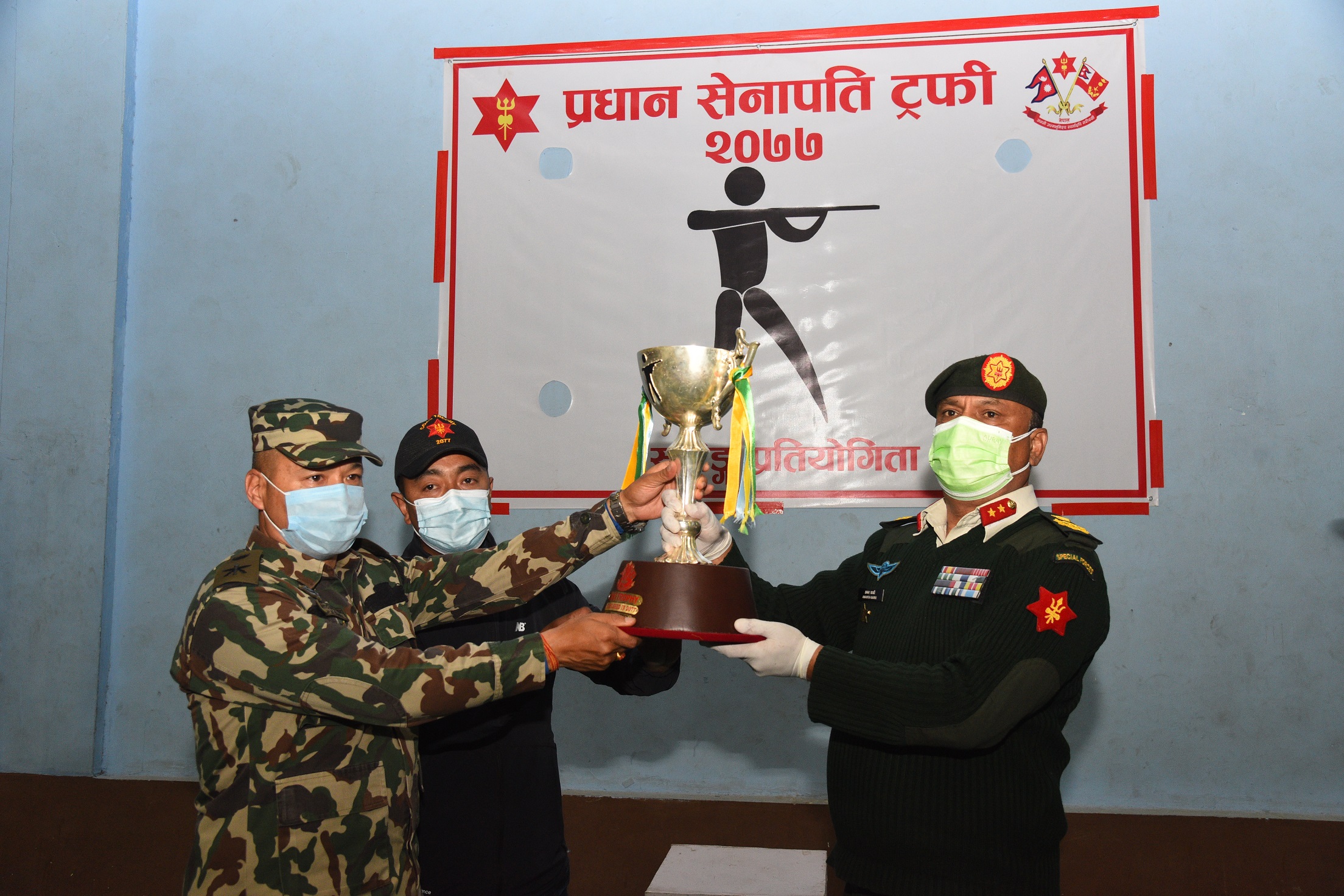 पुस २१ गतेबाट सुरु भएको उक्त ट्रफि प्रतियोगिता आज जङ्गी अड्डास्थित खेल मैदानमा प्रधानसेनापति थापाले एक विशेष समारोहकाबीच समापन गरेका हुन् । यस प्रतियोगितामा फुटबल, भलिबल, बास्केटबल, शुटीङ्ग र एथलेटीक्स गरी ५ वटा विधा समावेश गरिएको थियो भने आर्चेरीलाई पहिलो पटक डेमोन्सट्रेशन खेलको रुपमा समावेश गरिएको थियो ।