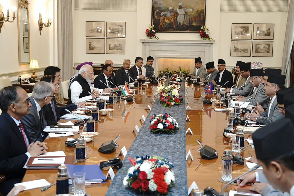 आज चार दिने भारत भ्रमणमा रहेका प्रधानमन्त्री पुष्पकमल दाहाल ‘प्रचण्ड’ र भारतीय प्रधानमन्त्री नरेन्द्र मोदीले नेतृत्व गरेका दुई देशका प्रतिनिधि मण्डलबीच नयाँदिल्लीको हैदरावाद हाउसमा वार्ता भएको हो।