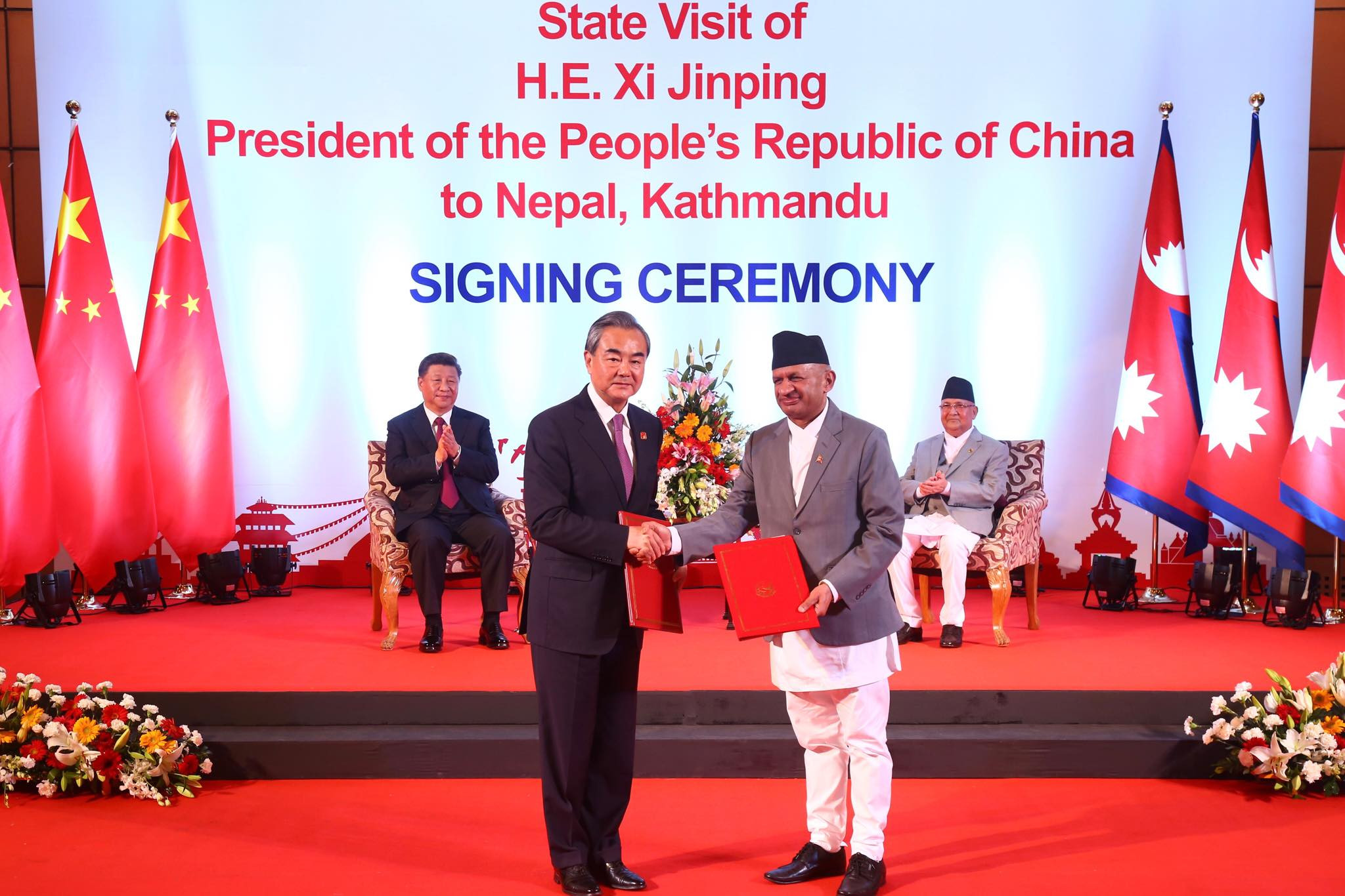 काठमाडौं – नेपाल–चीनबीच भएको द्विपक्षीय वार्तामा विभिन्न विषयमा द्विपक्षीय समझदारी पत्रमा हस्ताक्षर भएको छ । चिनियाँ राष्ट्रपति सी जिनपिङ र नेपालका प्रधानमन्त्री केपी शर्मा ओलीको उपस्थितिमा भएको उच्च स्तरिय वार्तामा विभिन्न १८ वटा समझदारी पत्र र दुई लेटर अफ एक्सचेञ्जमा हस्ताक्षर भएको हो ।