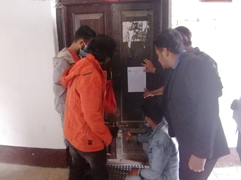 संघका अध्यक्ष सरोज तिमल्सिना नेबि संघका नेताहरू अन्शुल केसि,सागर चौधरी,राजेस राज मगर,रोशन श्रेष्ठ,रेक्सन श्रेष्ठ,रवि रोकाय, गणेश टन्डन क्याम्पस प्रमुख कार्यकक्षमा पुगेर तालाबन्दी गरेका थिए ।