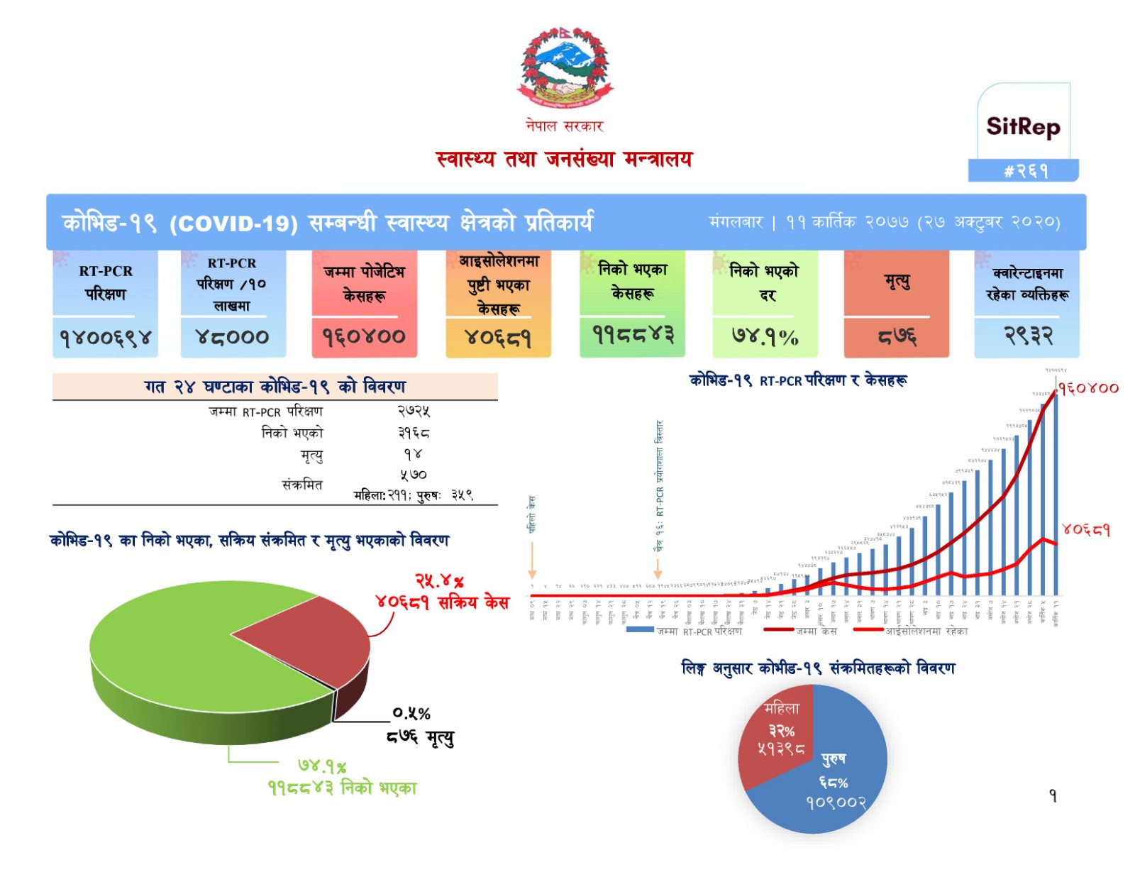मन्त्रालयका अनुसार पछिल्लो २४ घण्टामा २७२५ जनाको पीसीआर परीक्षण भएको छ भने त्यसमा ५७० जना पोजेटिभ भेटिएका छन् ।