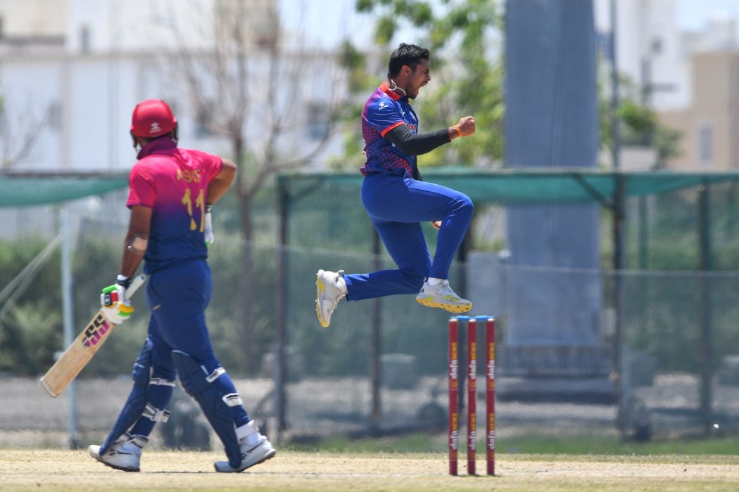 कप्तान रोहितकुमार पौडेल १८ बलमा जम्मा पाँच रन बनाएर आउट भए । कुशल मल्लले तीन, दीपेन्द्र सिंह ऐरीले पाँच, सोमपाल कामीले दुई रन मात्रै बनाउन सके । अविनास बोहोराले एक र ललित राजवंशीले दुई रन बनाए ।