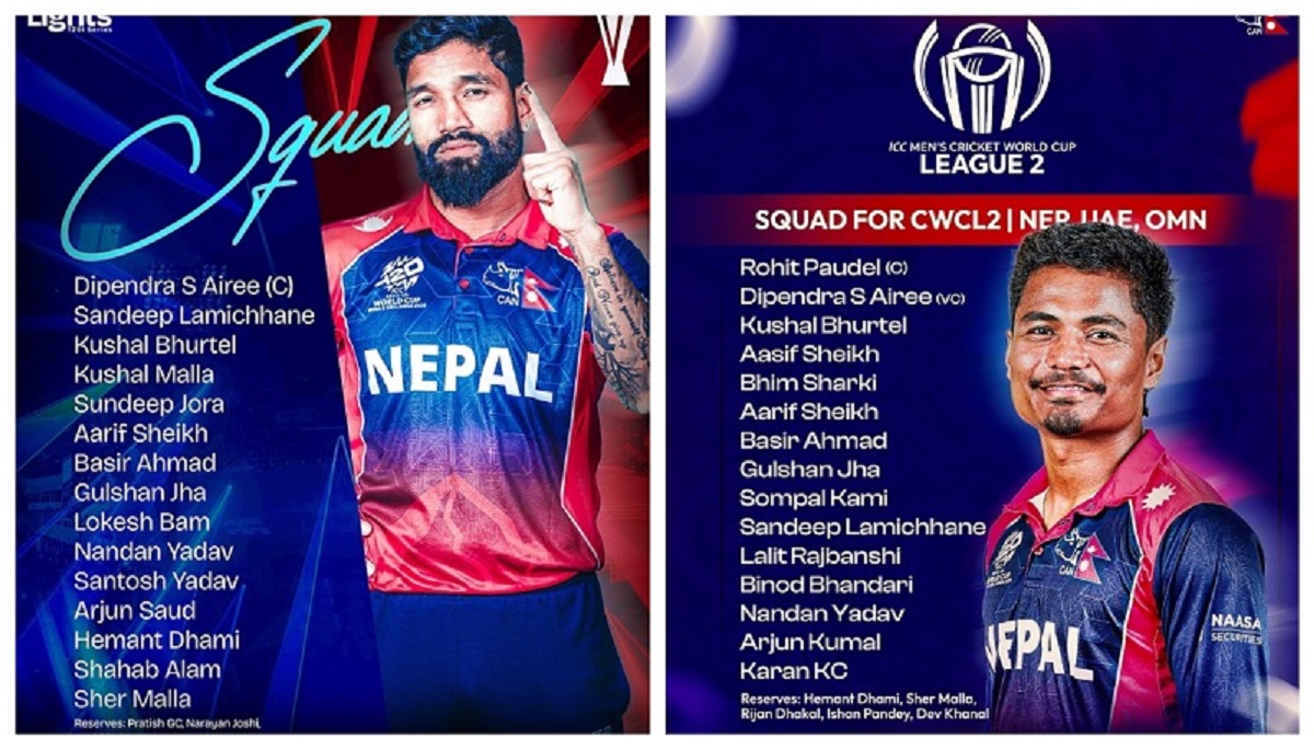 क्यानले शुक्रबार टी–२० शृङ्खलाका लागि दीपेन्द्रसिंह ऐरी र लिग–टु शृङ्खलाका लागि रोहित पौडेलको कप्तानीमा १५ सदस्यीय टोली घोषणा गरेको हो । अब नेपालको टी–२० टोलीको कप्तानी दीपेन्द्र र एकदिवसीय टोलीको कप्तानी रोहितले गर्ने क्यानले जनाएको छ ।