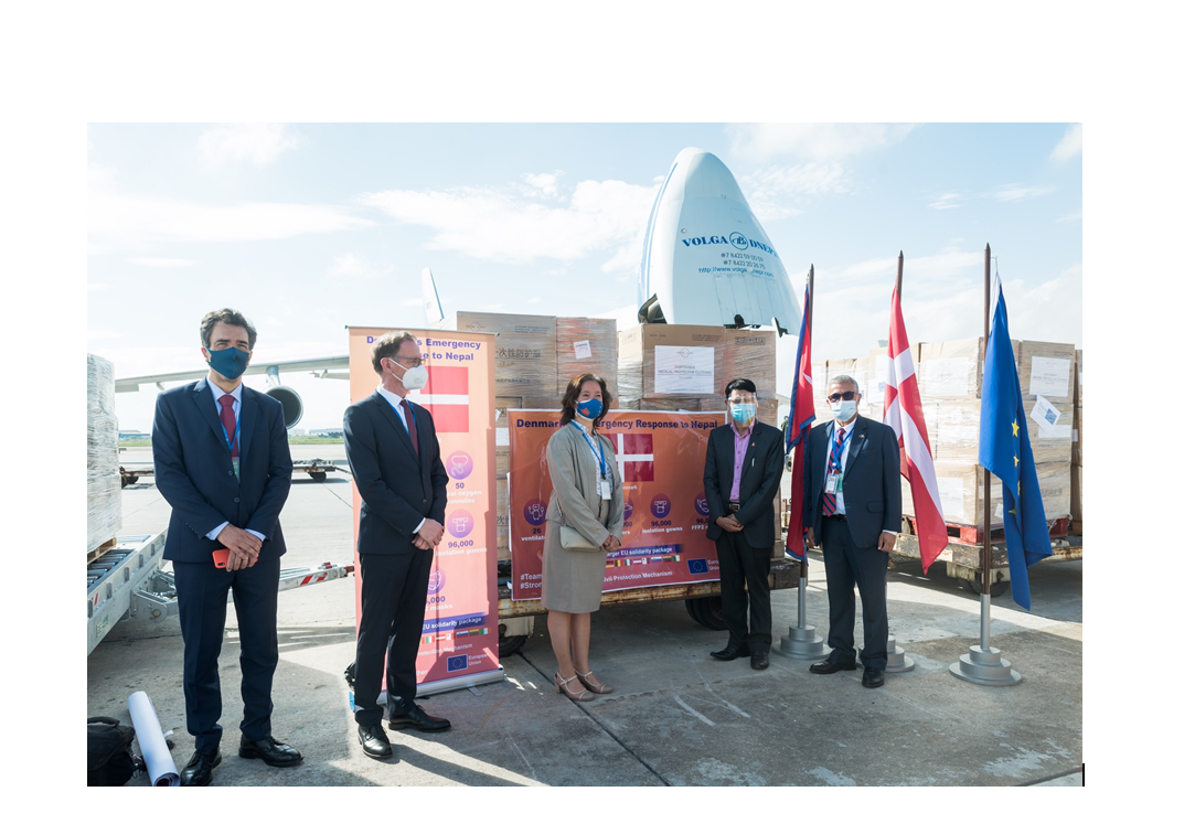 त्रिभुवन अन्तर्राष्ट्रिय विमानस्थलमा आयोजित एक समारोहकाबीच स्वास्थ्य तथा जनसंख्या मन्त्री शेरबहादुर तामाङलाई ईयुकी राजदूत नोना डेप्रे र नेपालका लागि डेनमार्कका महावाणिज्यदूत हरि धरेलले हस्तान्तरण गरेका थिए । यो सहयोग नेपाल सरकारबाट सहयोगका लागि पछिल्लो पटक आह्वान भएपछि प्रदान गरिएको हो । सो अवसरमा मन्त्री तामाङले कोभिड १९ विरुद्ध लड्दै गरेको नेपाललाई एक्यवद्धतास्वरुप आवश्यक स्वास्थ्य सामग्री सहयोग गर्ने इयुका सदस्य राष्ट्रहरुप्रति नेपाल सरकारको तर्फबाट धन्यवाद व्यक्त गरे ।