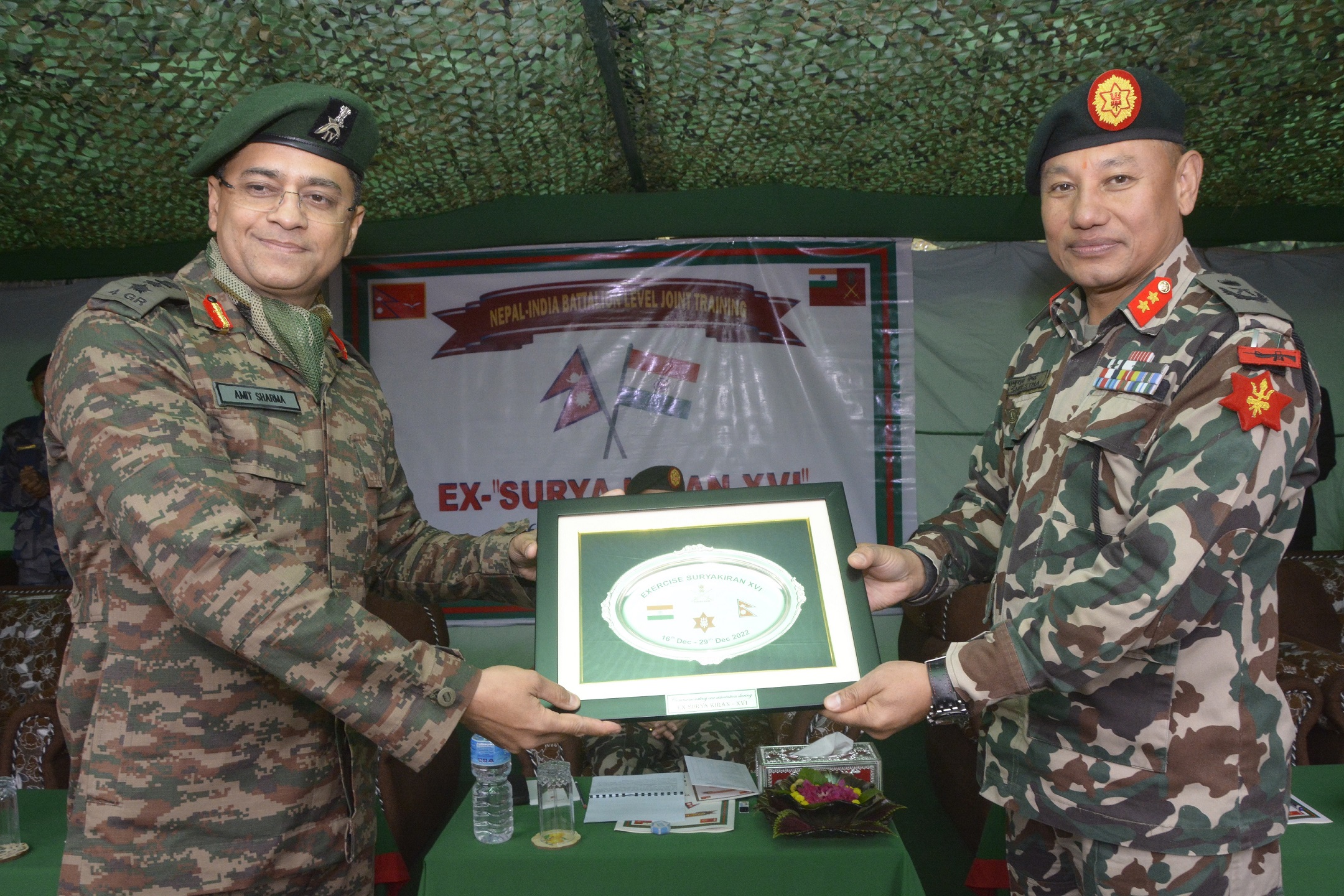 काठमाण्डु –  नेपाली सेना र भारतीय सेना संलग्न संयुक्त सैन्य अभ्यास ‘सूर्य किरण’काे १६ औं संस्करण समापन गरिएकाे छ । रूपन्देहीकाे सालझण्डीस्थित नेपाली सैनिक ब्याटल स्कुलमा सञ्चालन भएको अभ्यास बिहीबार सम्पन्न भएको हो।