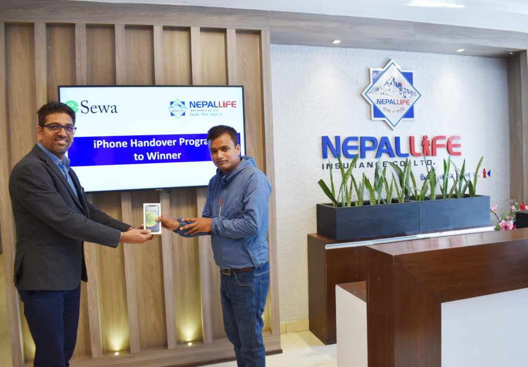 नेपाल लाइफको कार्यालयमा एक कार्यक्रमकाबीच उक्त पुरस्कार प्रदान गरिएको हो । लक्की ड्र मार्फत छनोट भएका विराटनगर निवासी विज्ञान दाहाललाई नेपाल लाइफका नायब महाप्रबन्धक अमित केयलले उक्त आइफोन १२ प्रदान गरेका हुन् ।