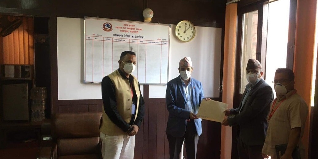 शुक्रबार स्वास्थ्य मन्त्रालयमा ज्ञापनपत्र बुझाउँदै संघका महासचिव डा.बद्री रिजाल र अध्यक्ष लोचन कार्कीले हेलिकोप्टरमार्फत काठमाण्डुमा ल्याउन सरकारसँग गरेका हुन् ।
