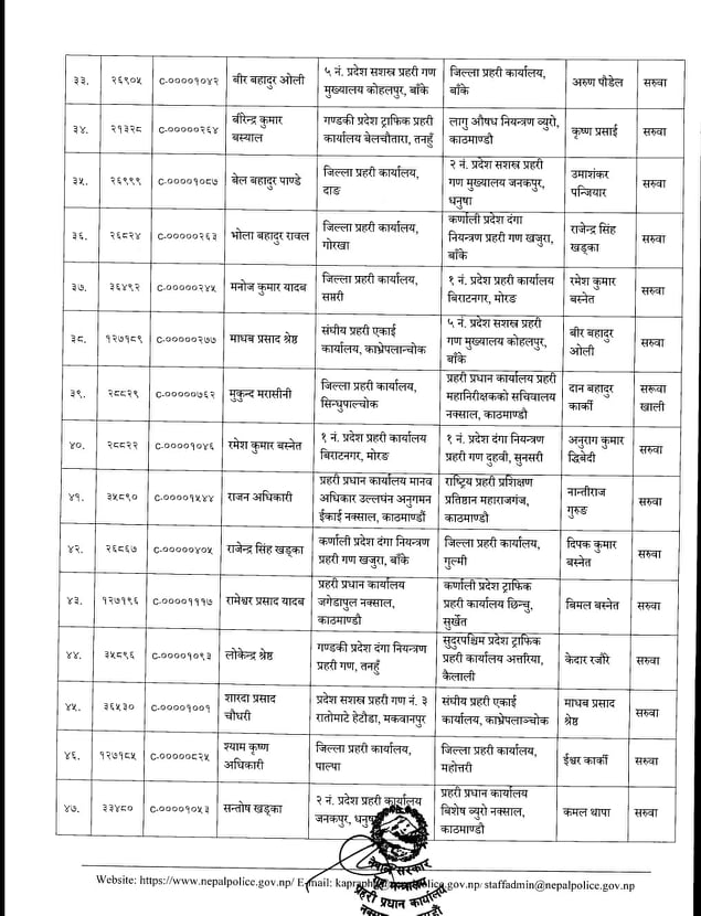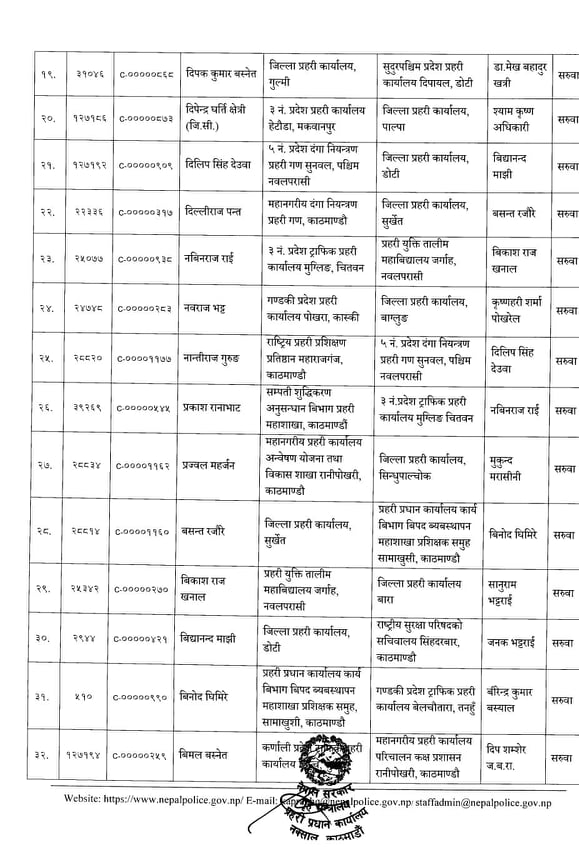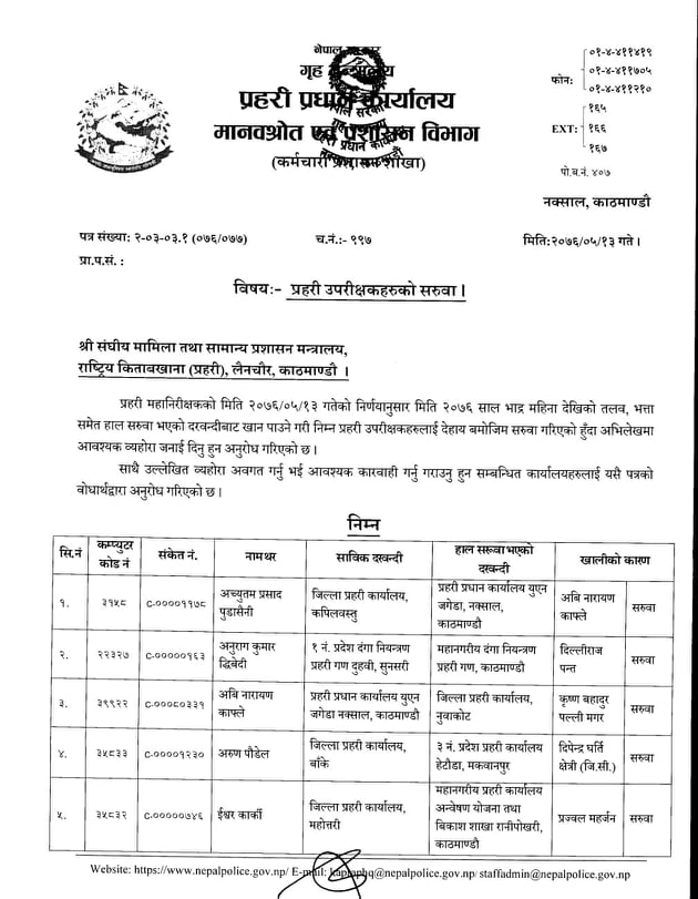 शुक्रबार एक विज्ञप्ति जारी गर्दै मानवस्रोत एवम् प्रशासन विभागले भदौ महिनादेखिकै तलब, भत्तासमेत हाल सरुवा भएको दरबन्दीबाट पाउने गरी एसपीहरुको सरुवा गरिएको हो।