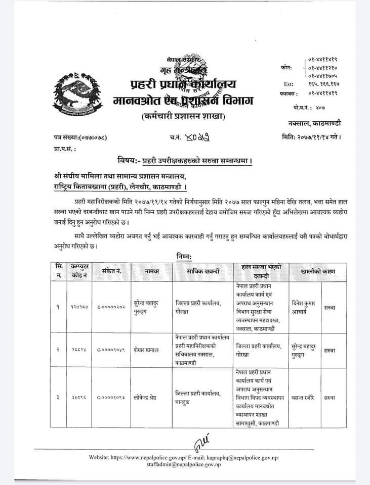 नेपाल प्रहरीका ११ जना एसपीको सरुवा (नामसहित)