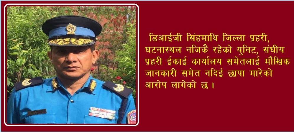 डिआईजी सिंहमाथी जिल्ला प्रहरी, घटनास्थल नजिकै रहेको युनिट, संघीय प्रहरी ईकाई कार्यालय समेतलाई मौखिक जानकारी समेत नदिई छापा मारेको आरोप लागेको छ । घटनाको वारेमा विवाद भएपछि गृहसचिव महेश्वर न्यौपानेले समेत चांसो व्यक्त गरेका छन् ।