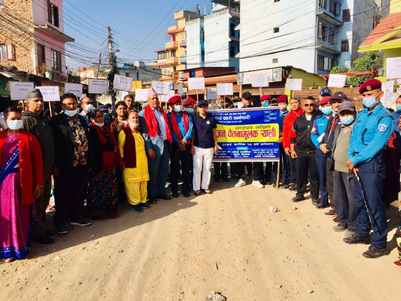 काठमाण्डु – तिहार र छट पर्वलाई लक्षित गर्दै नेपाल प्रहरीले काठमाण्डुमा जनचेतना मुलक कार्यक्रम गरेको छ । समुदाय प्रहरी साझेदारी कार्यक्रम अन्तर्गत महानगरीय प्रहरी वृत्त वानेश्वरले विभिन्न संघ संस्थाको समन्वयमा काठमाण्डु महानगरपालिका ३१ मा सचेतनामुलक कार्यक्रम गरेको हो ।