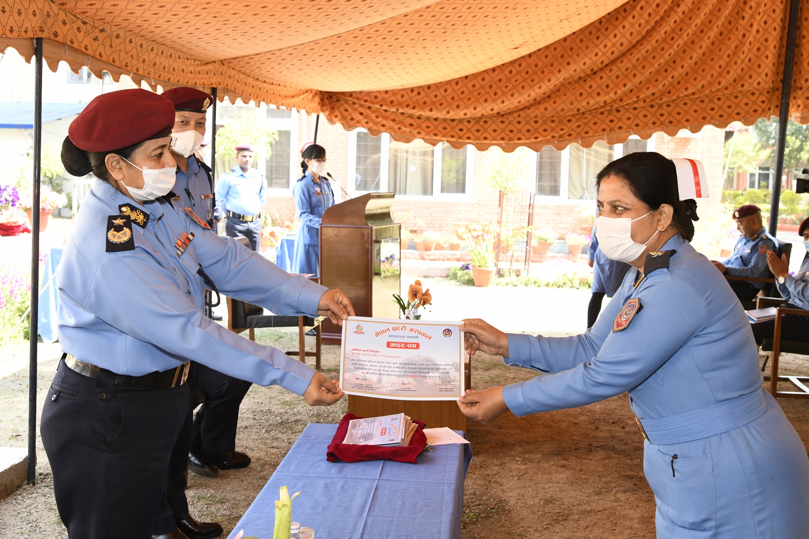 उक्त अवसरमा प्राविधिक प्रहरी अतिरिक्त महानिरीक्षक डा. सिंहले लामो समयावधी अस्पतलामा सेवा गर्ने प्रहरी कर्मचारीहरुलाई कदरपत्र, उत्कृष्ट कार्य सम्पादन गर्ने कर्मचारीहरुलाई नगद तथा प्रमाणपत्र र उत्कृष्ट विभागहरुलाई प्रशंसापत्र प्रदान गरे ।