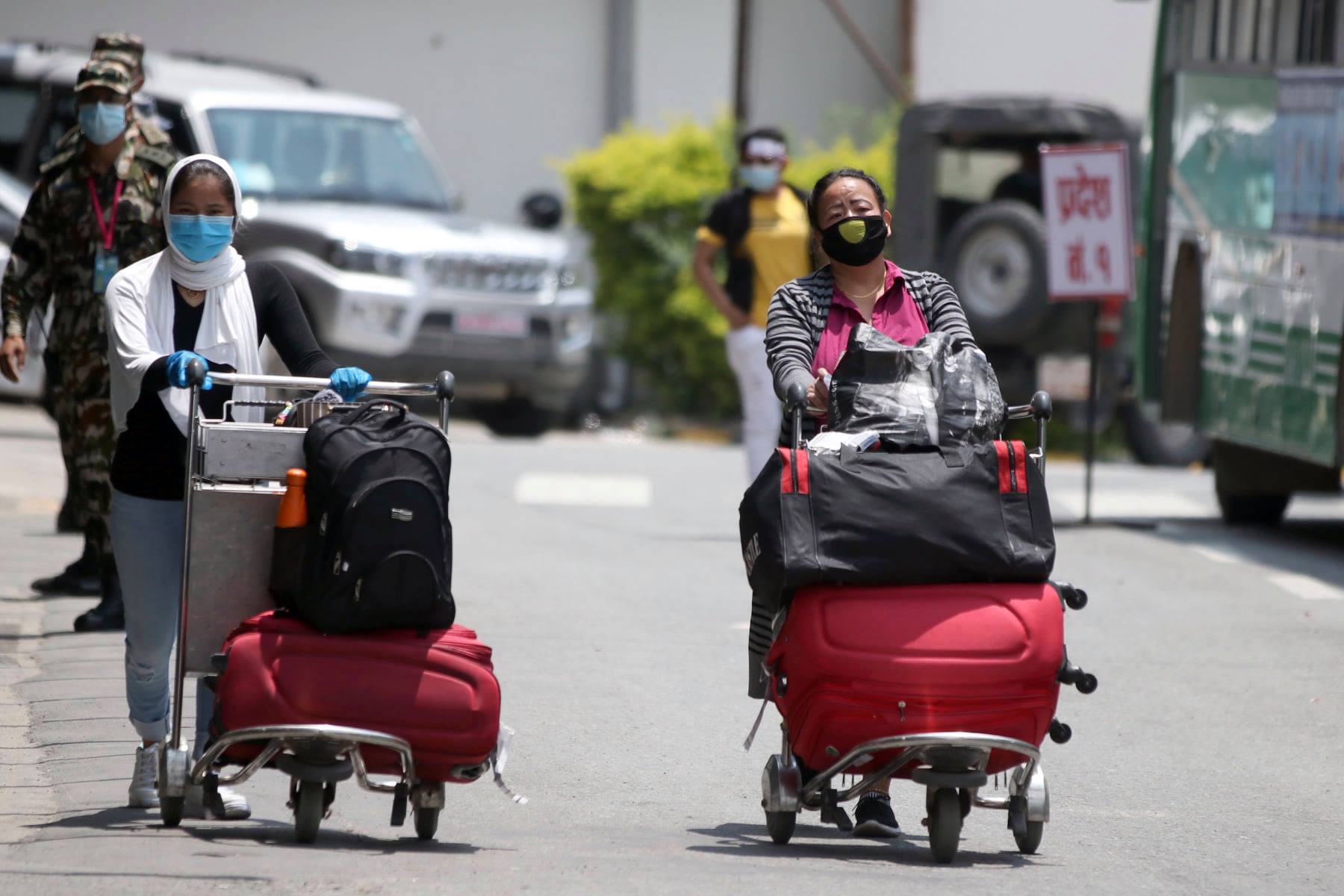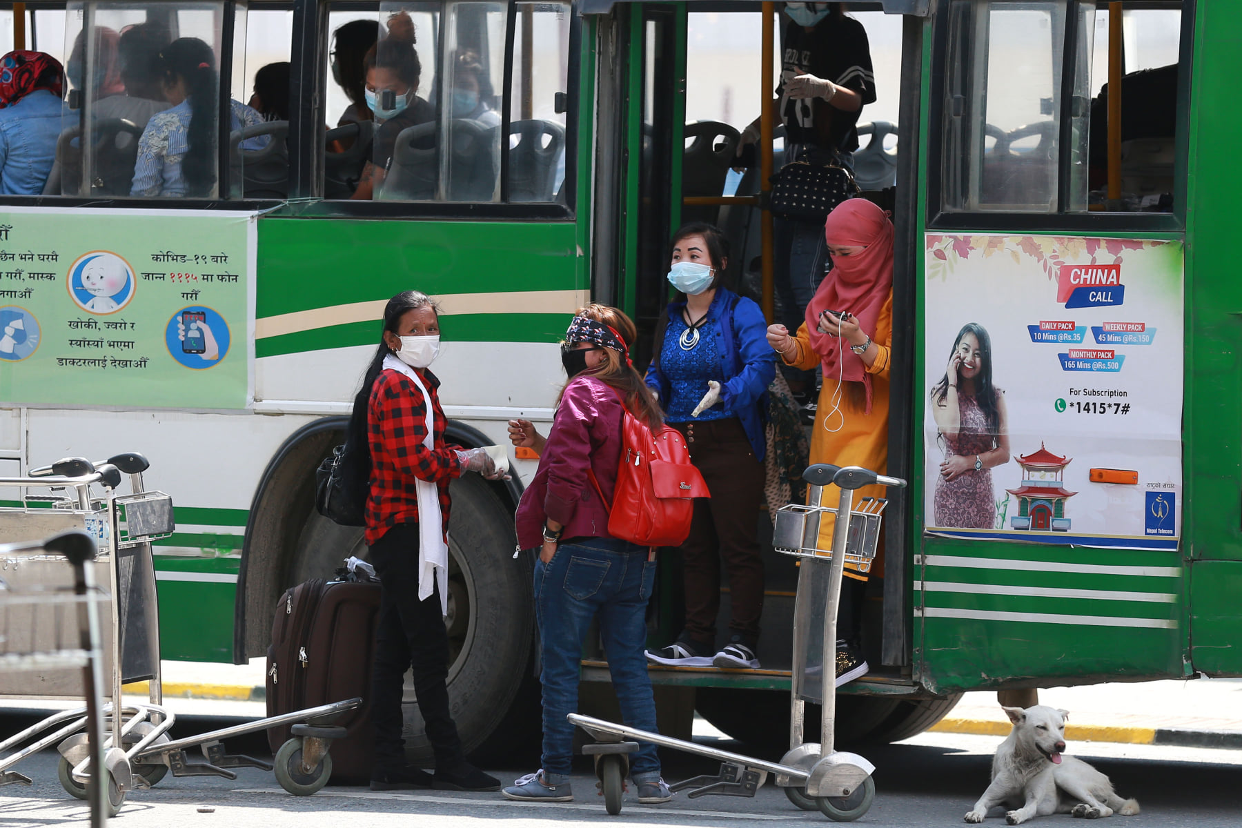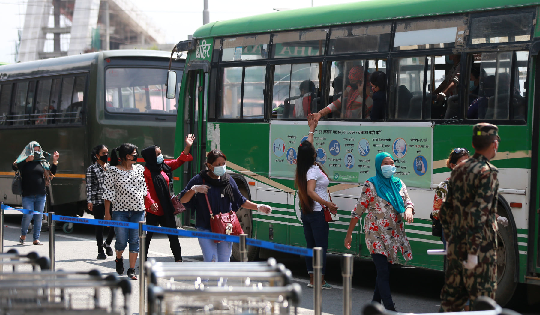 कुवेतबाट बिहीबार त्रिभुवन अन्तरर्राष्ट्रिय विमानस्थल आइपुगेका नेपाली बसबाट होल्डिङ्ग सेन्टर जाँदै । तस्वीरः प्रदीपराज वन्त/रासस