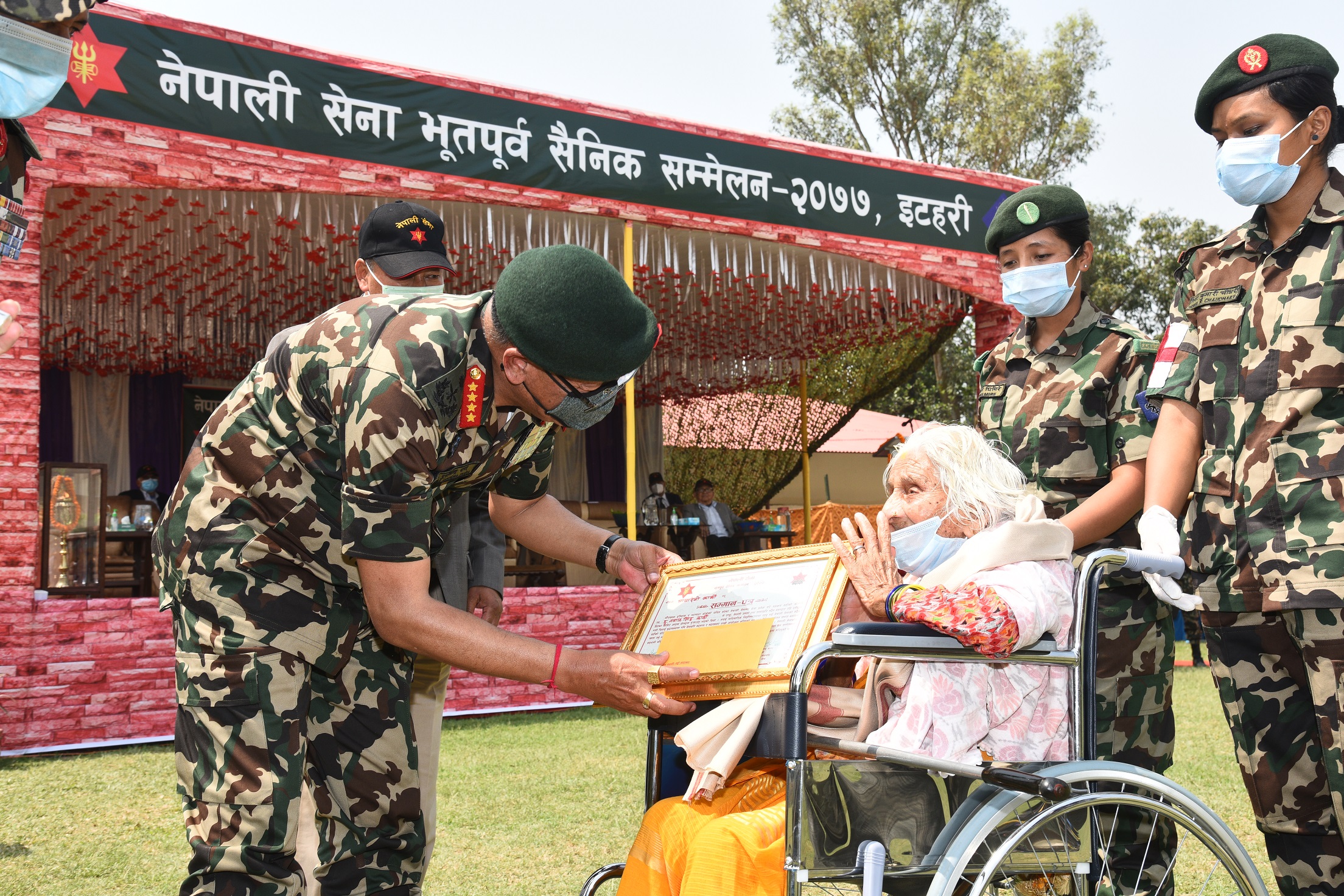 सैनिक कल्याणकारी बोर्डको समन्वय र नेपाली सेनाको व्यवस्थापनमा पूर्वी पृतना हे.क्वा. ईटहरीमा आयोजना भएको प्रदेश स्तरीय ‘भू.पू. सैनिक सम्मेलन–२०७७’ ‘शिक्षा, स्वास्थ्य, सुविधा र स्वरोजगार–आत्म सम्मान तथा समृद्धिको आधार’ भन्ने मूल नाराकासाथ सम्पन्न भएको हो ।