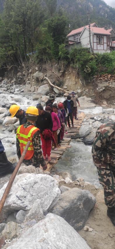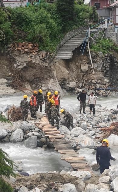 सोमबार सेनाको रणदल गुल्मबाट खटिएको टोलीले नेपाल प्रहरी र स्थानिय बासिन्दाहरुसँगको सहकार्यमा नयाँबजार कोतोतर्फ आवत जावत गर्ने २ वटा अस्थायी काठेपुल निर्माण गरेको हो ।