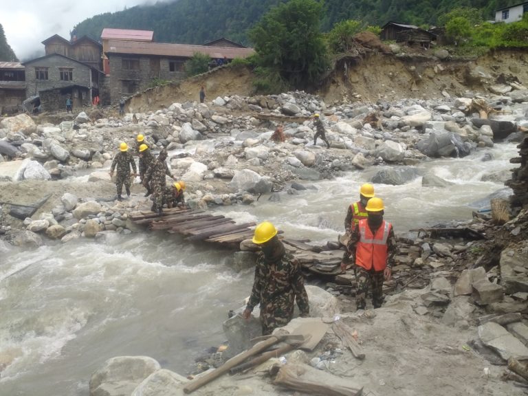 मनसुन सुरु भएसंगै नेपाली सेना बाढी, पहिरोले प्रभावित भएकाहरुको खोज, राहत तथा उद्धारमा लागिरहेको छ ।