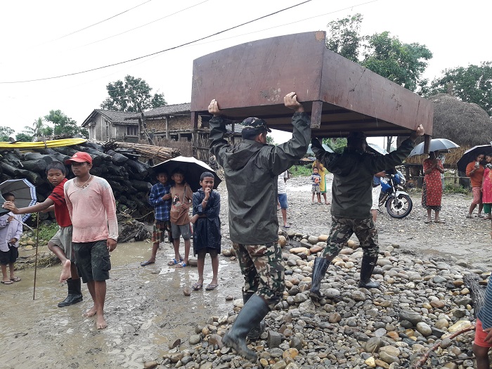 सेनाले चितवन जिल्ला, माडी नगरपालिका वडा नं.१ स्थित बरुवा, सेरुवा, गर्दी, पाण्डवनगरमा डुवानमा परेका स्थानिय व्यक्तिहरुको सरसामानहरु सुरक्षित स्थानमा स्थानान्तरण गर्नुका साथै खैरहनी नगरपालिका वडा न.१ स्थित नयाँबस्तीमा कयर खोलाबाट कटान हुन सक्ने संभावित स्थानहरुमा तटबन्ध निर्माण कार्यमा सहयोग गरेको छ ।
