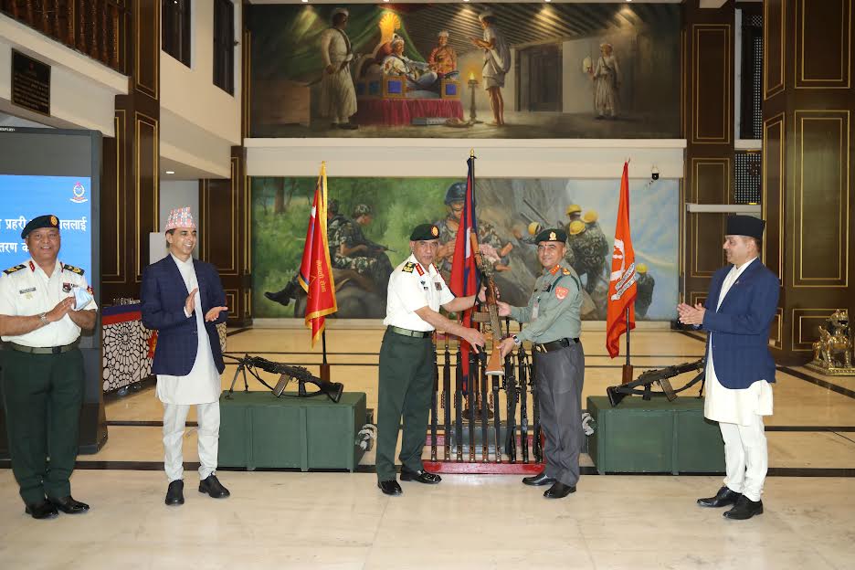 प्रधानसेनापति प्रभुराम शर्माले सशस्त्र प्रहरी बल, नेपालका महानिरीक्षक शैलेन्द्र खनाललाई ती हतियार हस्तान्तरण गरेको नेपाली सेनाको जनसम्पर्क तथा सूचना निर्देशनालयले जनाएको छ ।