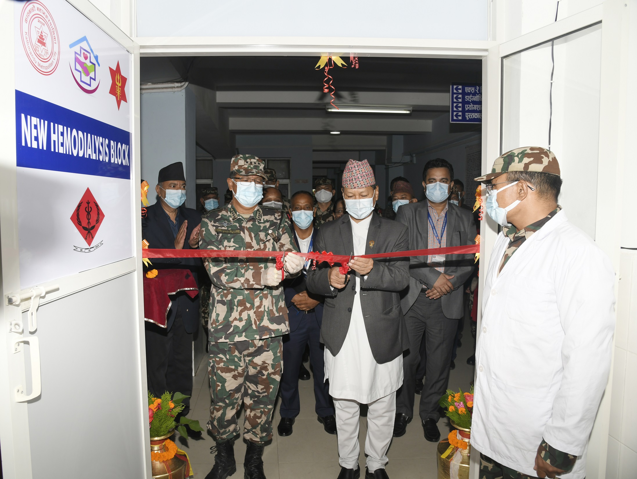 काठमाण्डु – नेपाली सेनाले छाउनीस्थित वीरेन्द्र अस्पतालमा खडा गरिएको हेमोडाईलाईसिस युनिटको उद्घाटन गरेको छ । नेपाली सेनाका प्रधानसेनापति पूर्णचन्द्र थापा र काठमाण्डु महानगरपालिकाका मेयर विद्यासुन्दर शाक्यले संयुक्त रुपमा हेमोडाईलाईसिस युनिटको उद्घाटन् गरेका हुन् ।