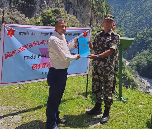 नेपाली सेनाले गर्यो बेनिघाट-लार्केभञ्ज्याङ्ग अन्तर्गत १८ किलो मिटर सडक निर्माण सम्पन्न गरि हस्तान्तरण